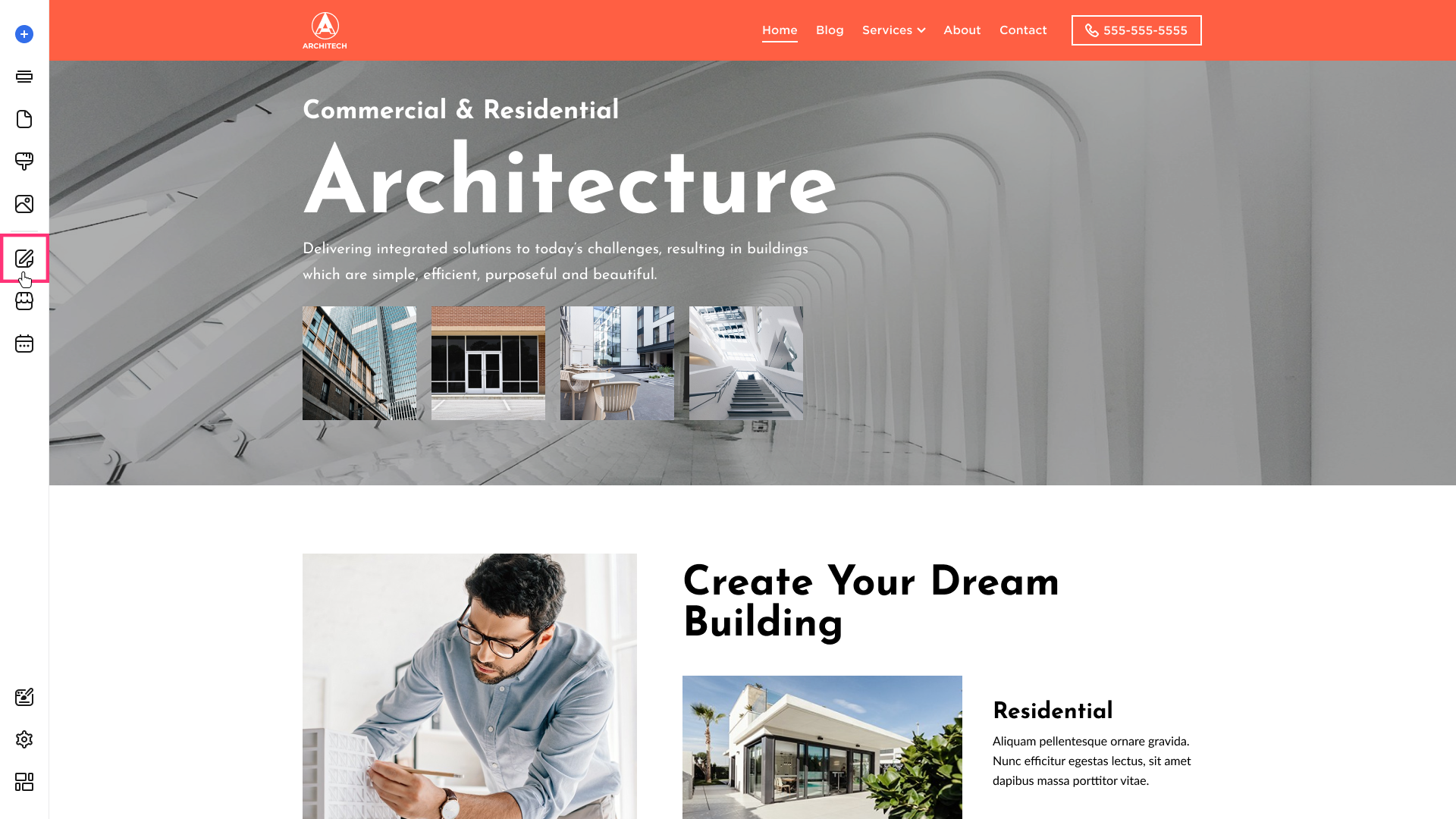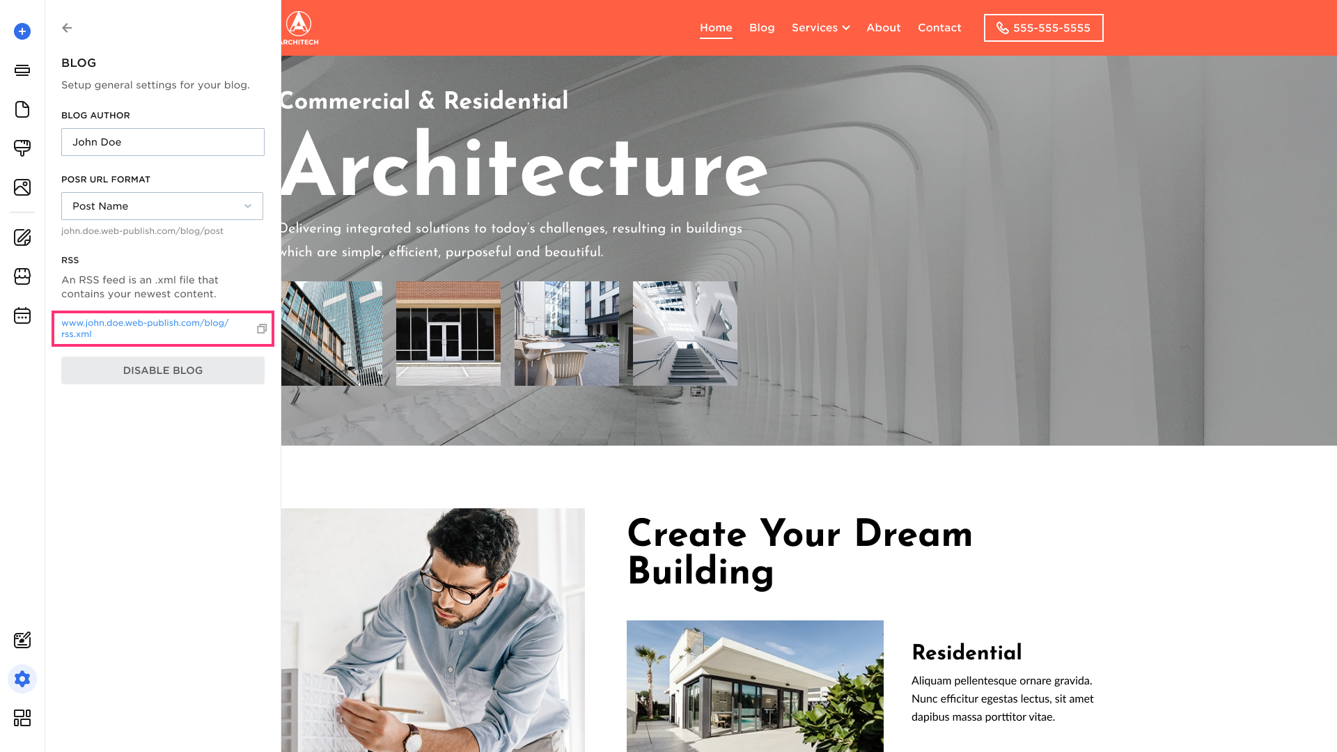- Select Blog on the left sidebar of the Site Editor: