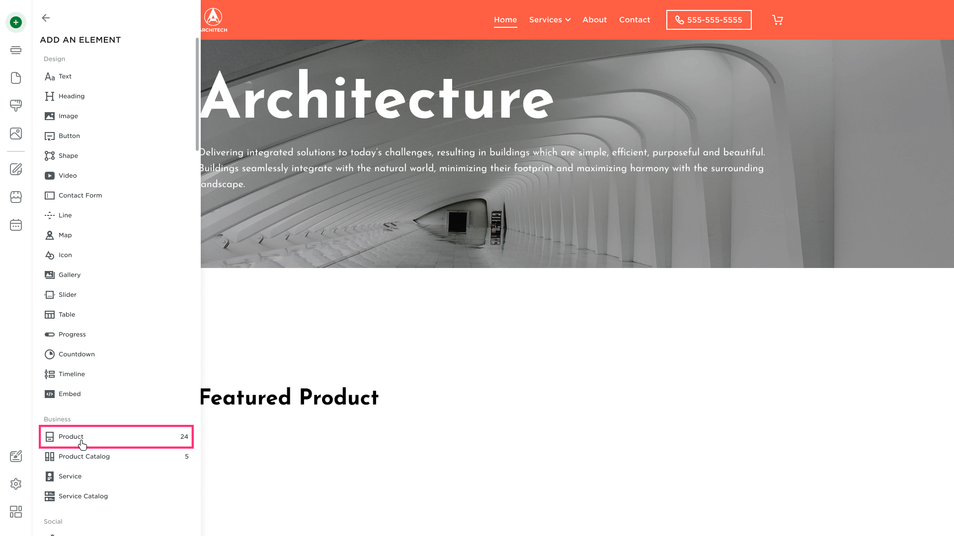Please Note: There's a limit of 25 Product elements per page. If you need to add more products per page, please use the Catalog element.