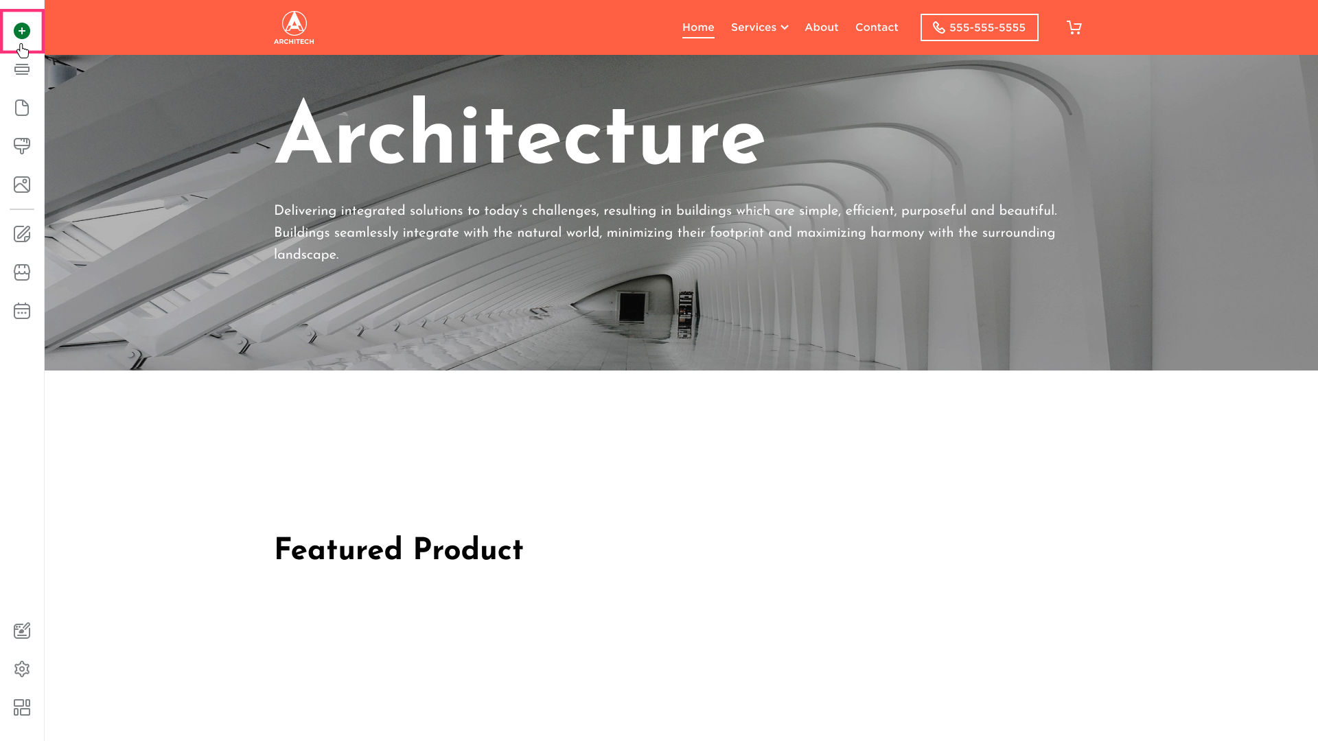 - Hover over the left sidebar of the Site Editor and click Build (+) button: