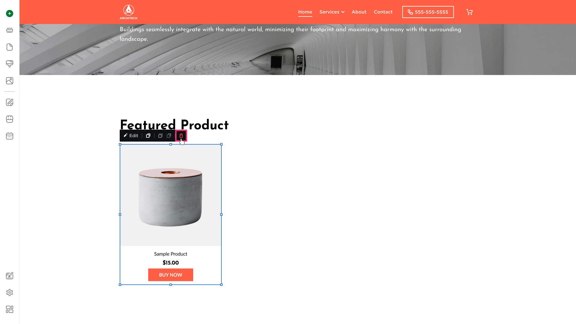 - To delete the product, click on the element and choose the Remove button [Bin] that appears in its toolbar:
