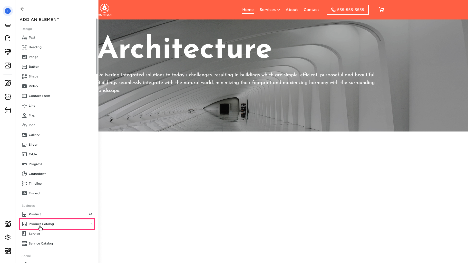 With the Catalog element, you can add a Product Сatalog to the website page and select a category it will display.