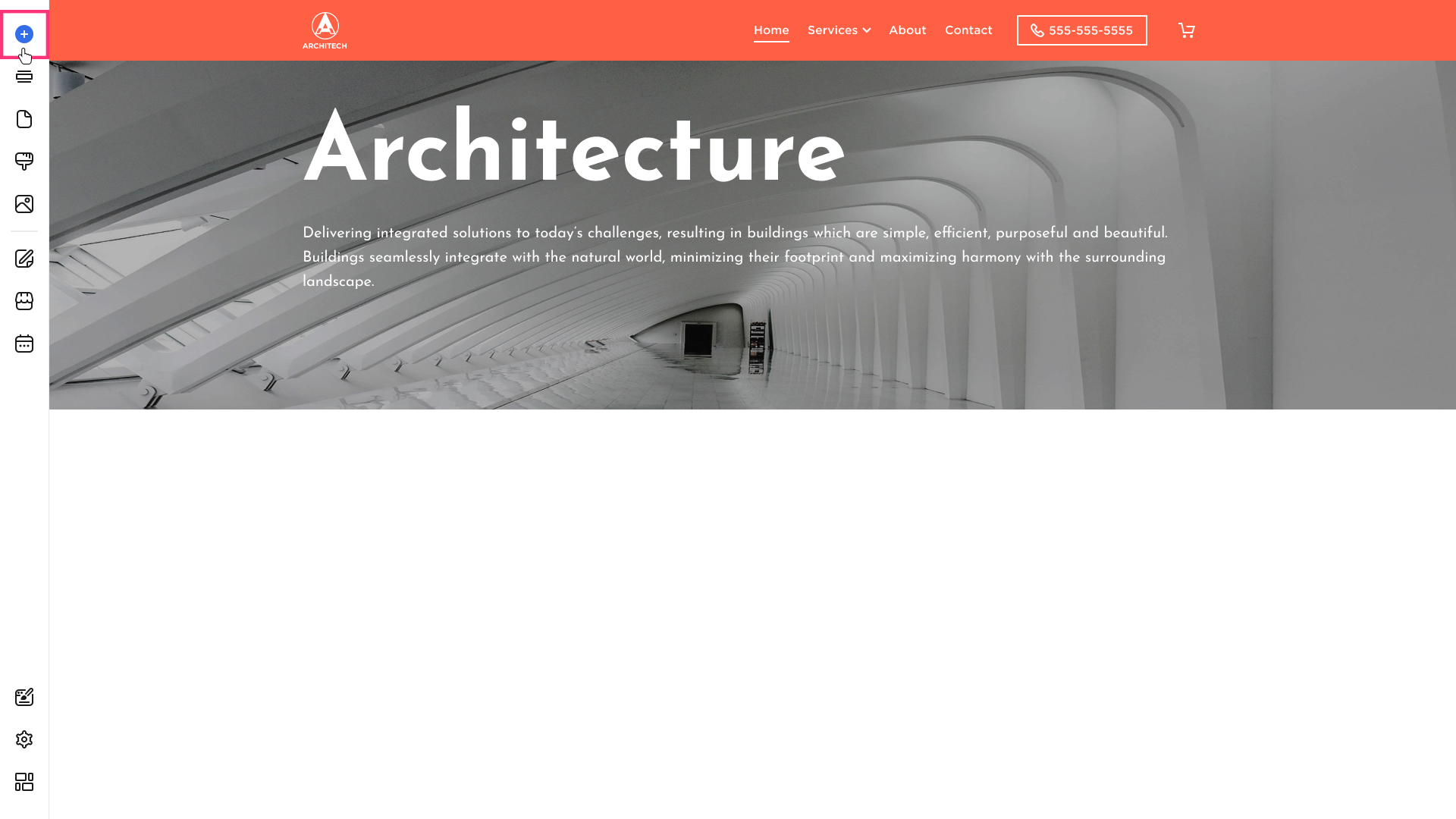 - Hover over the left sidebar of the Site Editor and click Build (+) button: