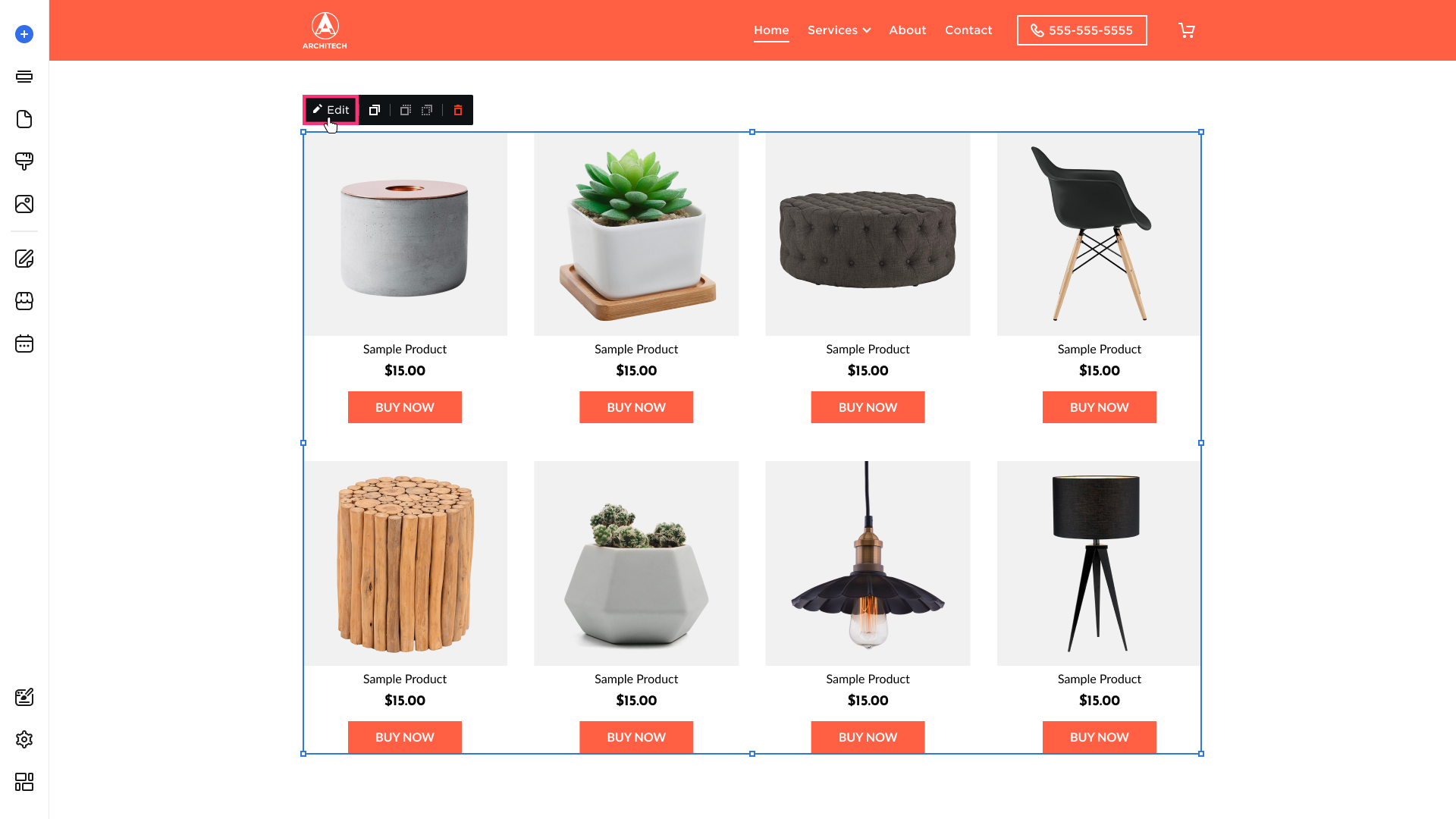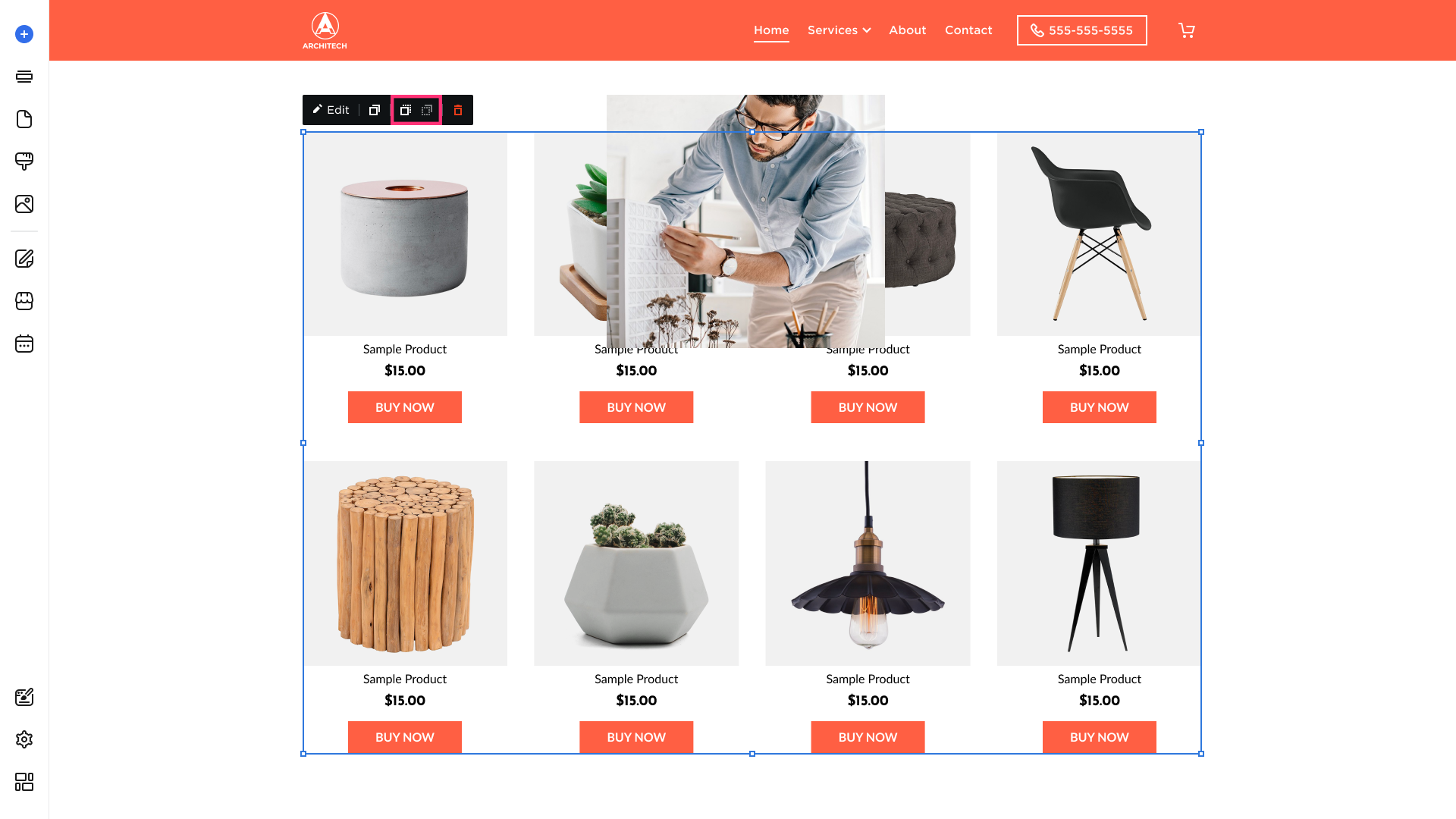 - To duplicate the catalog, click on the element and choose the Duplicate button that appears in its toolbar: