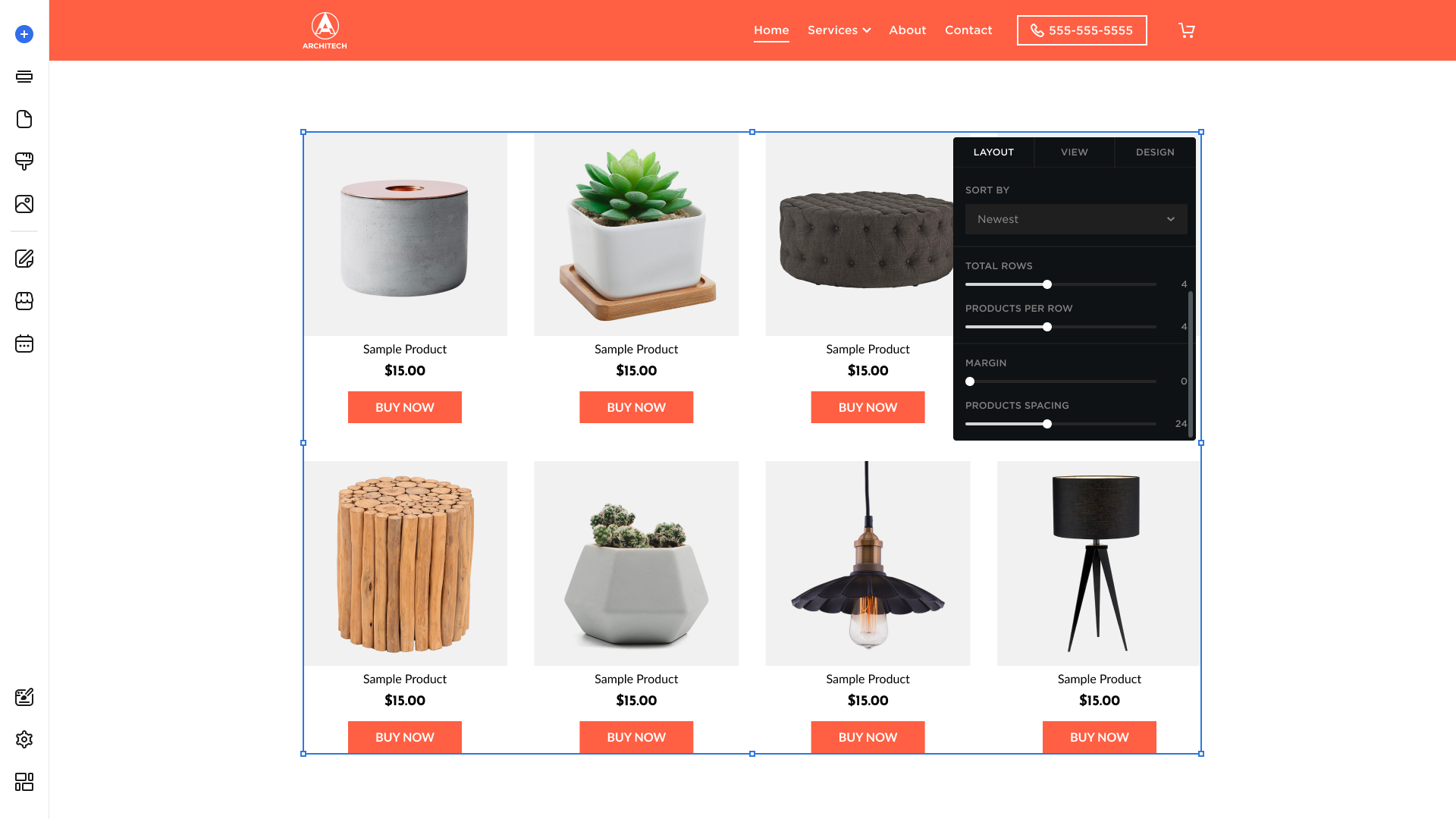 - Products Per Row. Use Slider to set how many products will be presented in each row.
