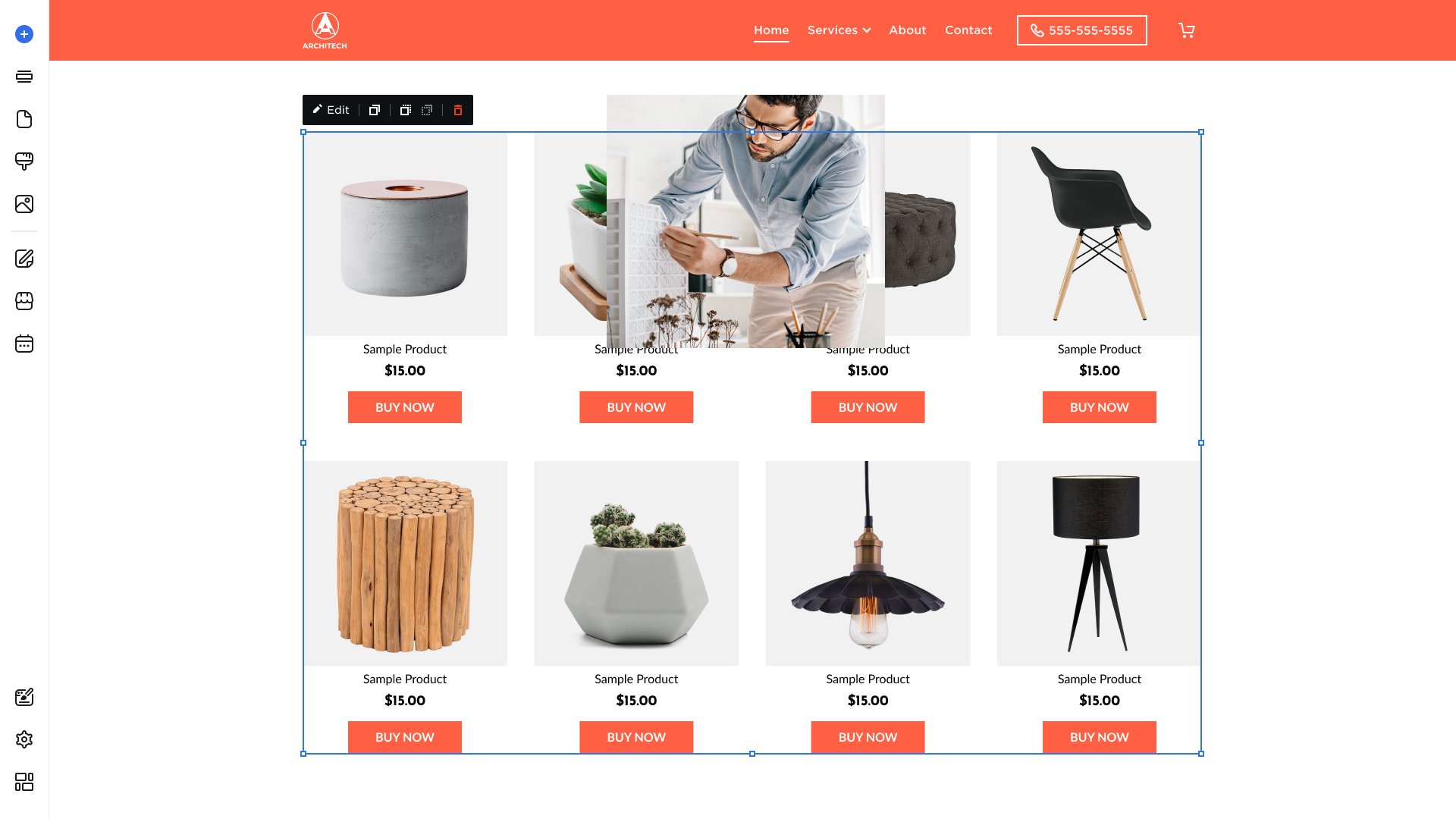 - After you choose the element from the list, drag it to the desired section and drop it using the grid.