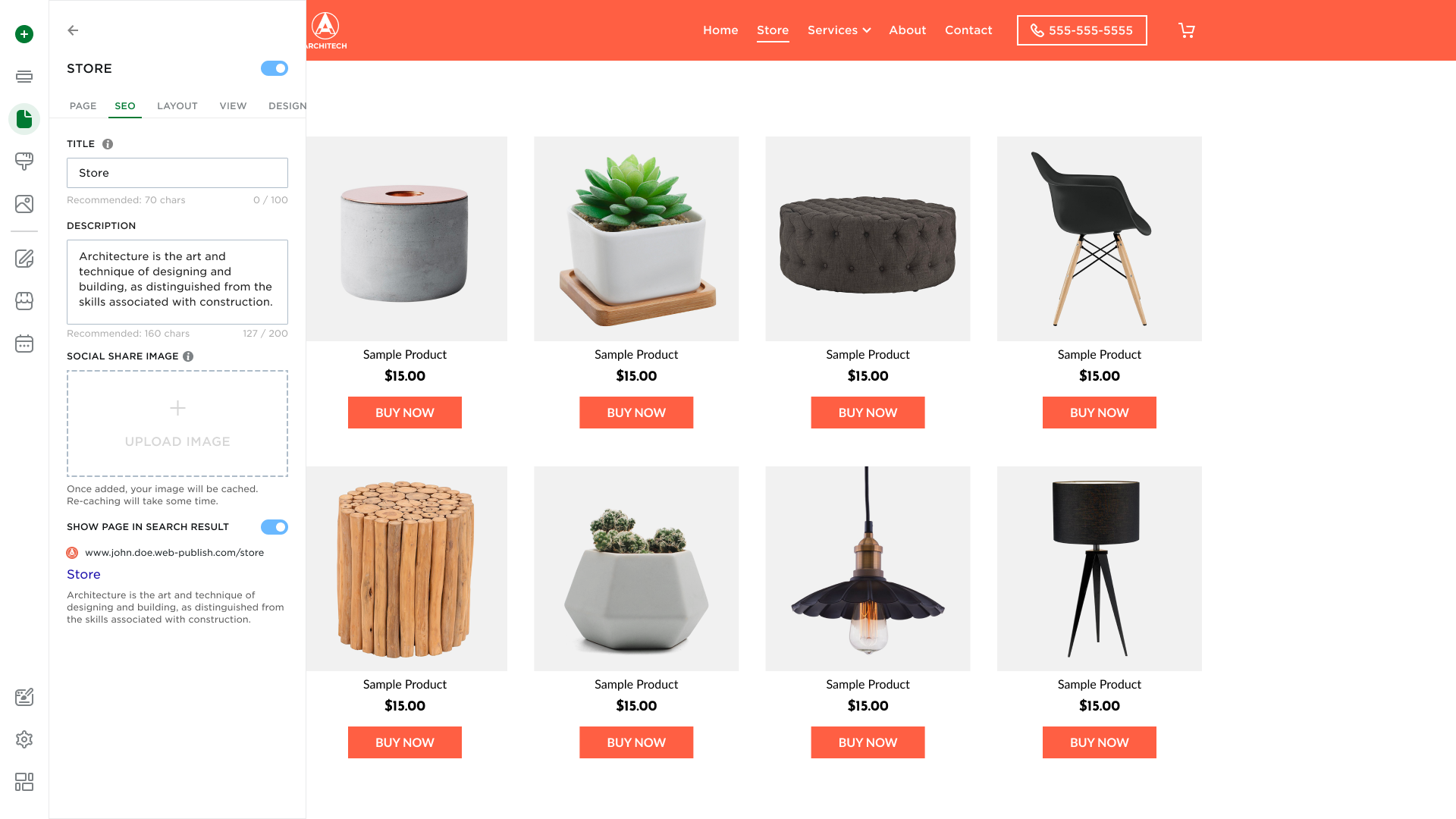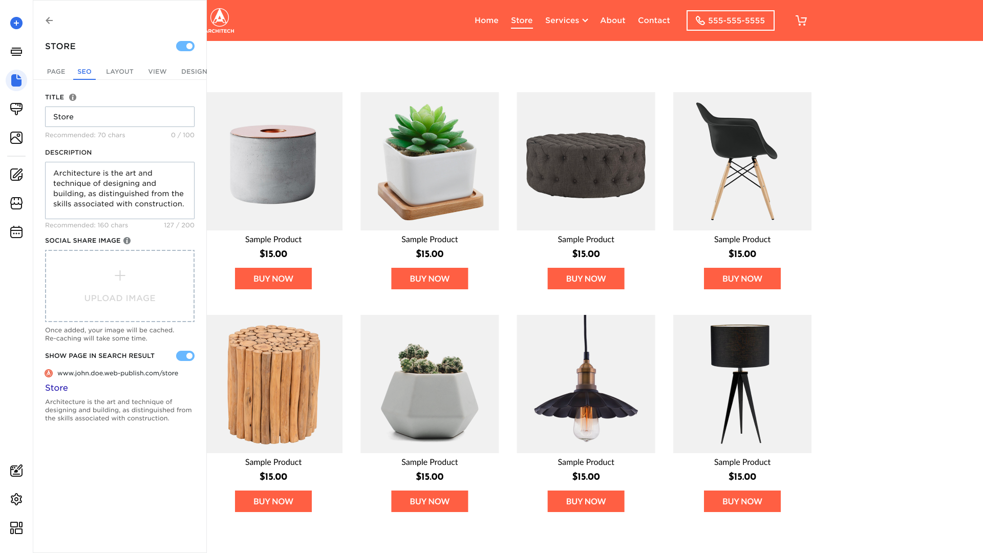 SEO Settings allow you to optimize your store page for search engines. You can manage: