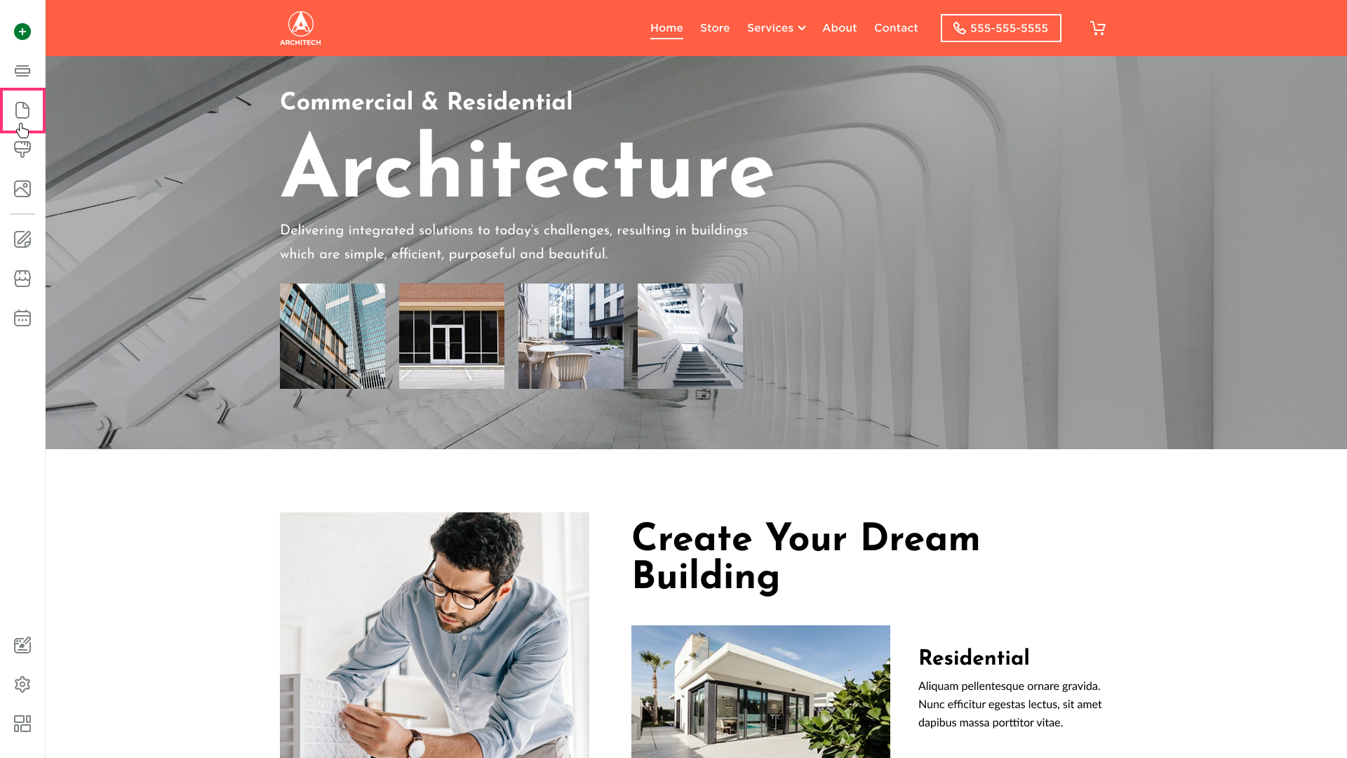 - In the Site Editor, hover over the left sidebar and click Pages: