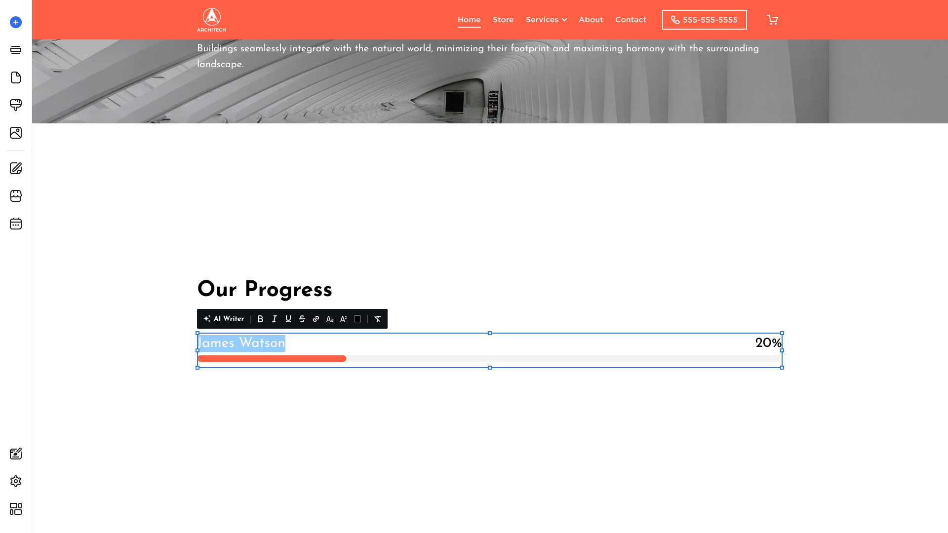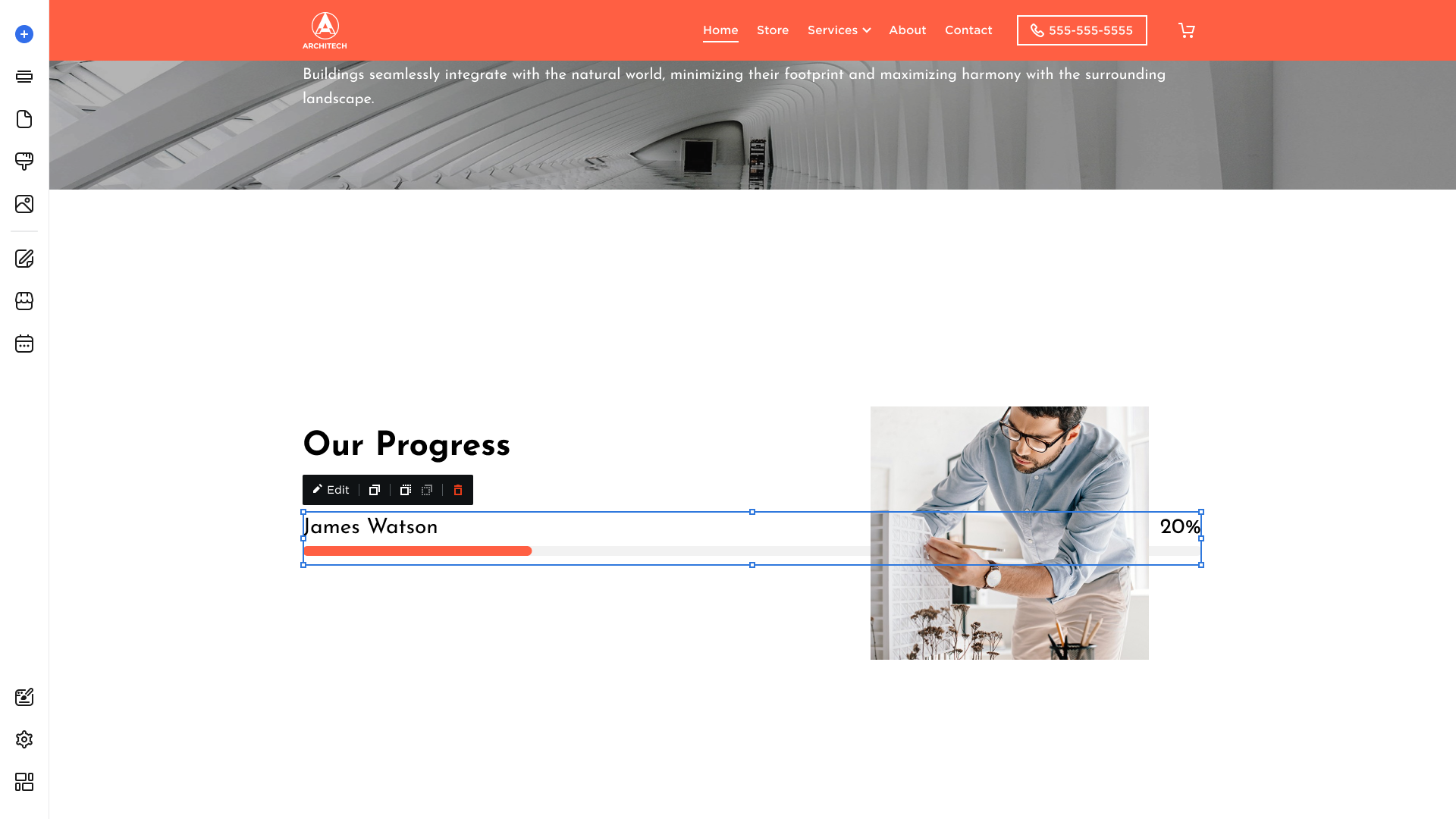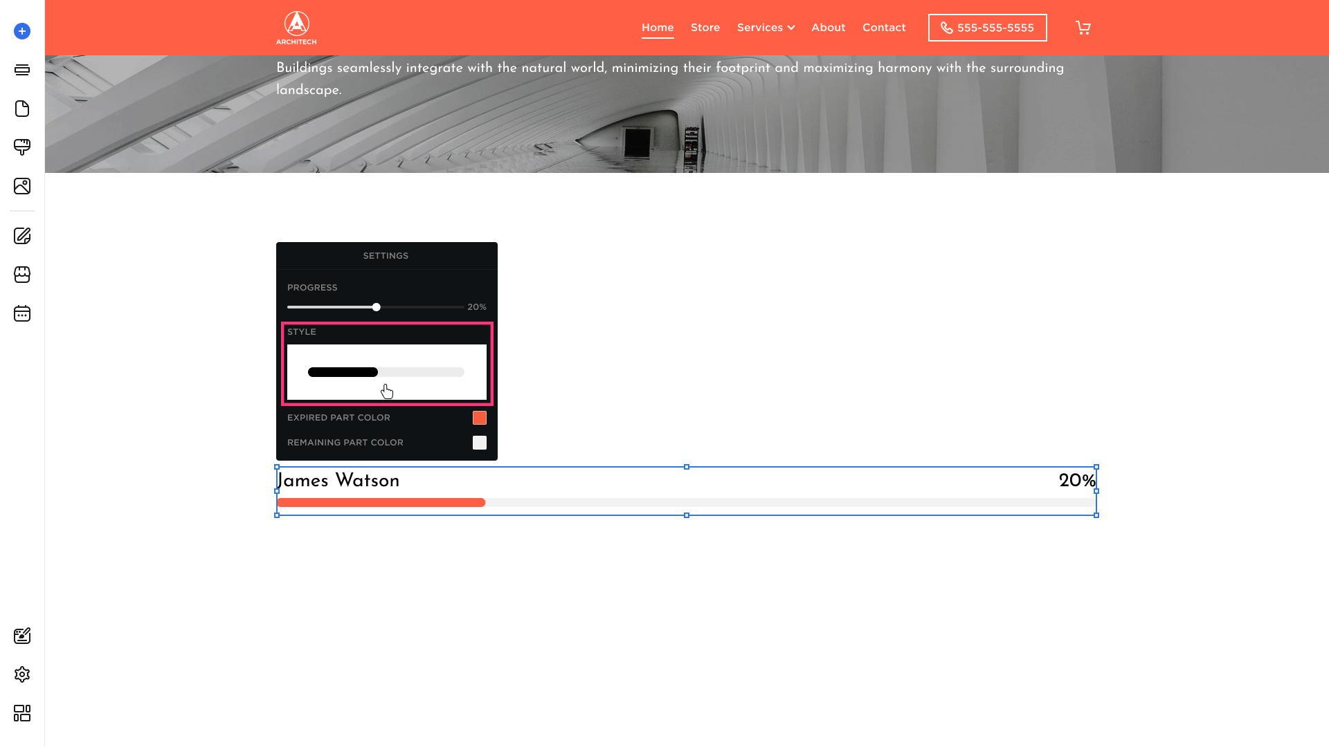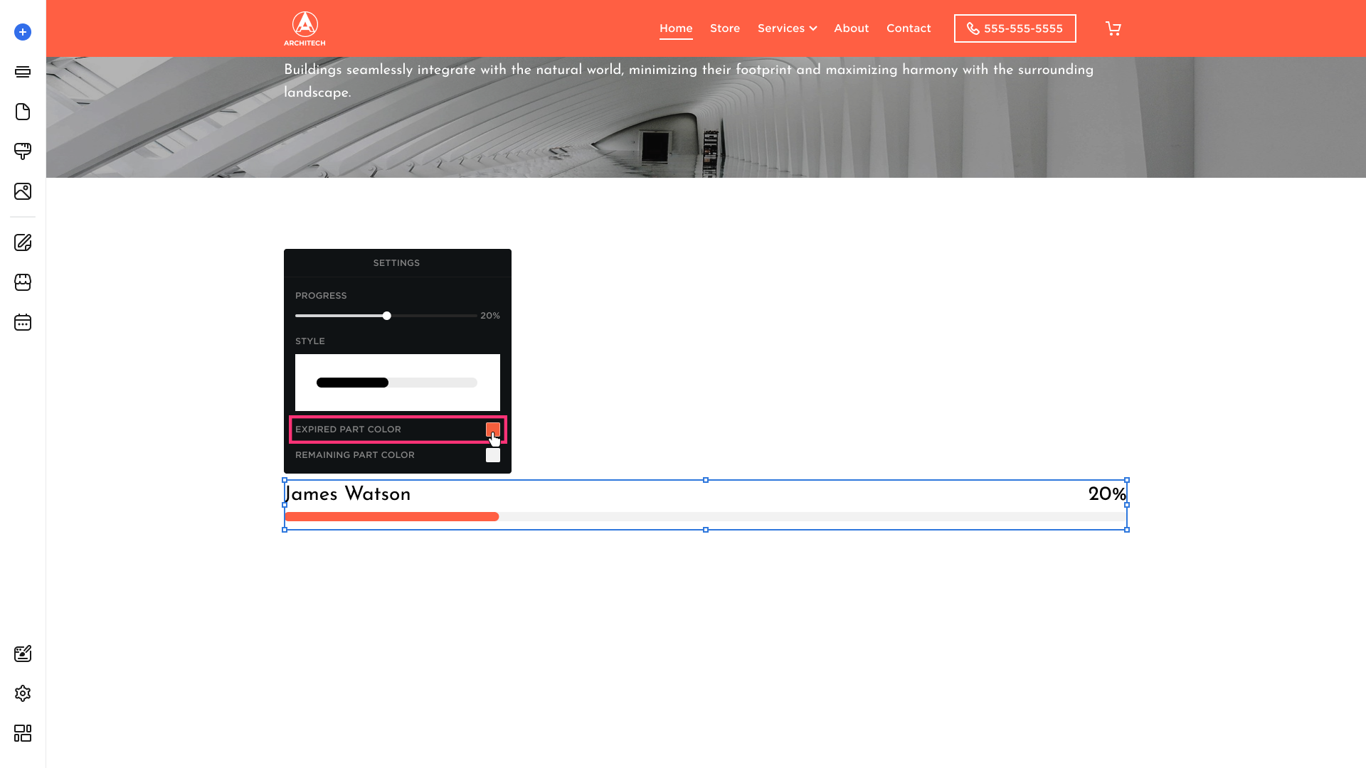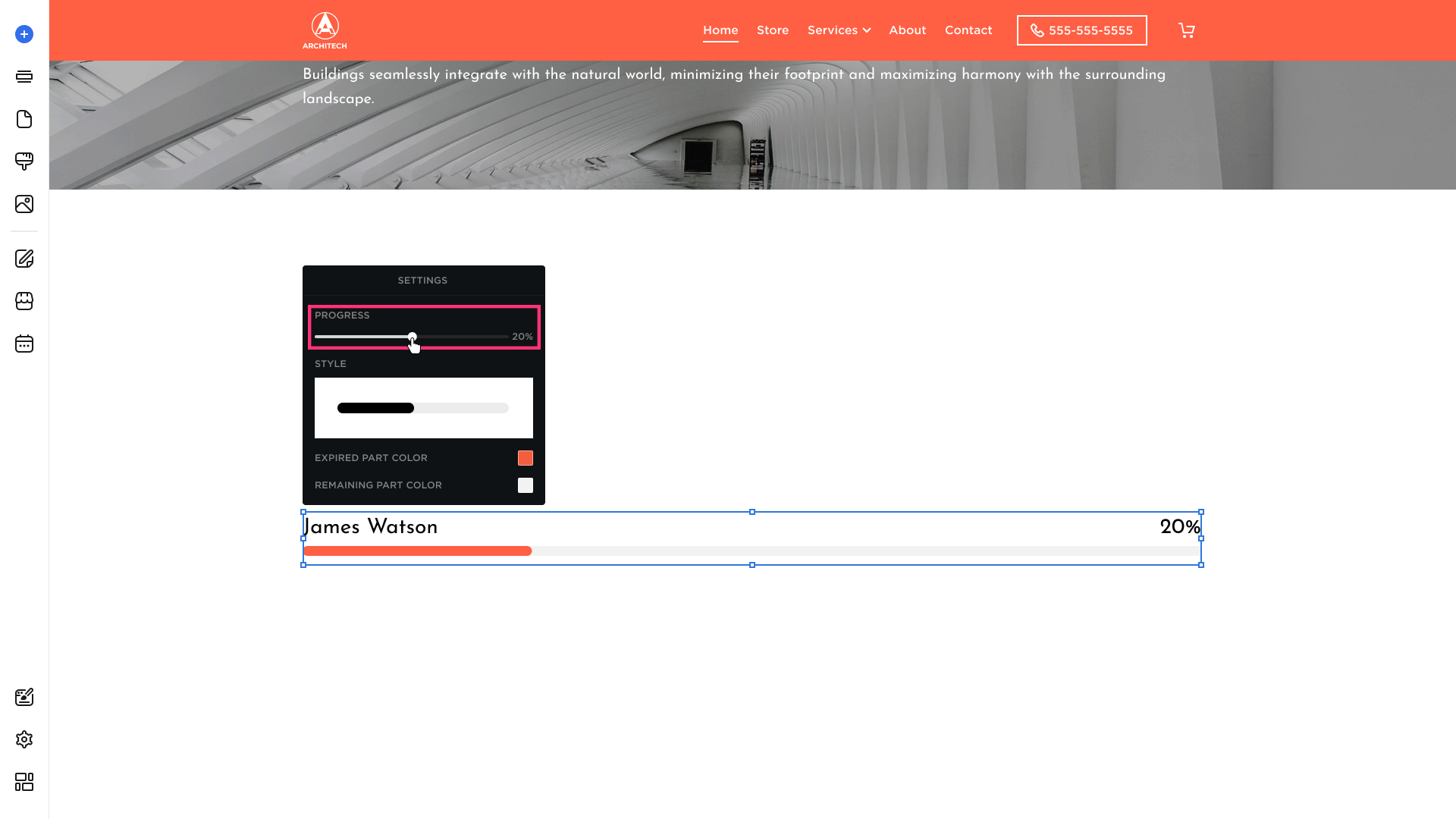 Please Note: Progress Bar is not dynamic. Open element's Settings to set or edit the progress value.