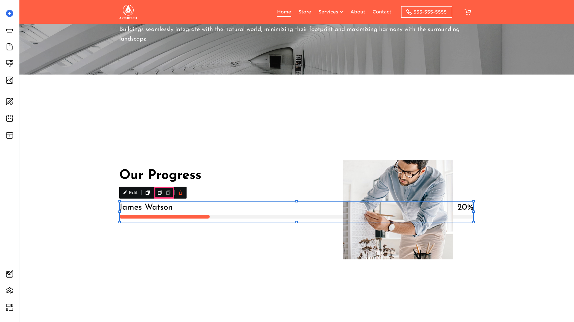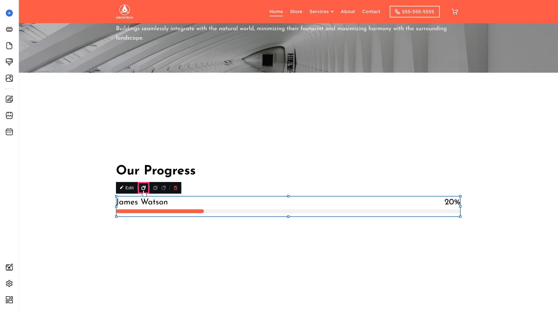 - To duplicate progress bar, click on it and choose the Duplicate button that appears in its toolbar: