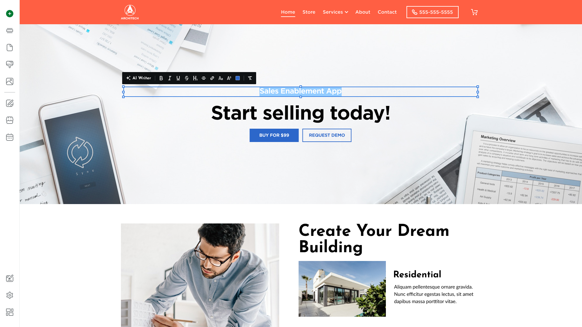 • The new Call to Action section will immediately appear. You can now modify the Call to Action section to suit your needs.
