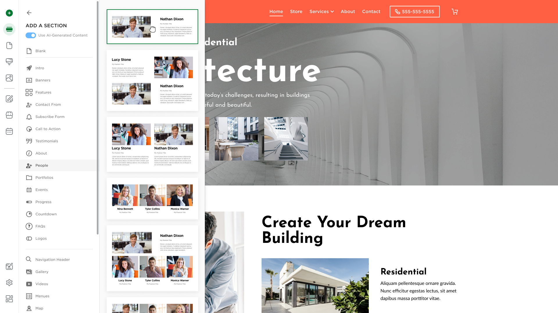 The People section is an effective and user-friendly tool that allows you to create an informative section on your website to highlight your team members, their role in a company, and a personal headshot.