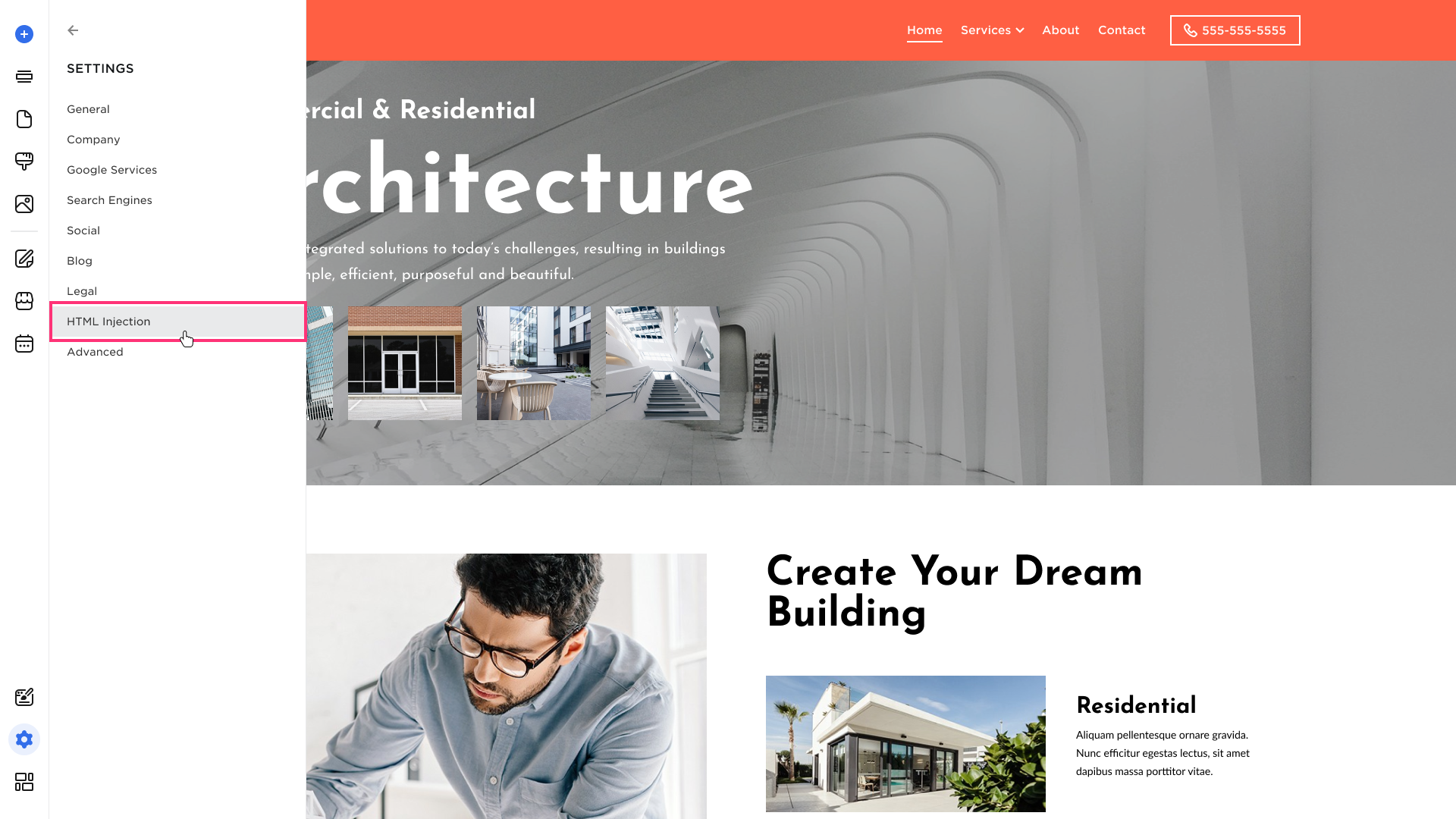 The HTML Injection allows you to add custom HTML code into <head> or </body> sections of your website.