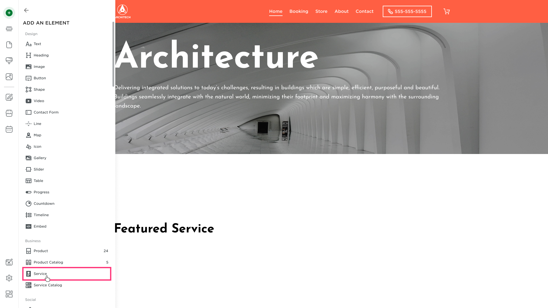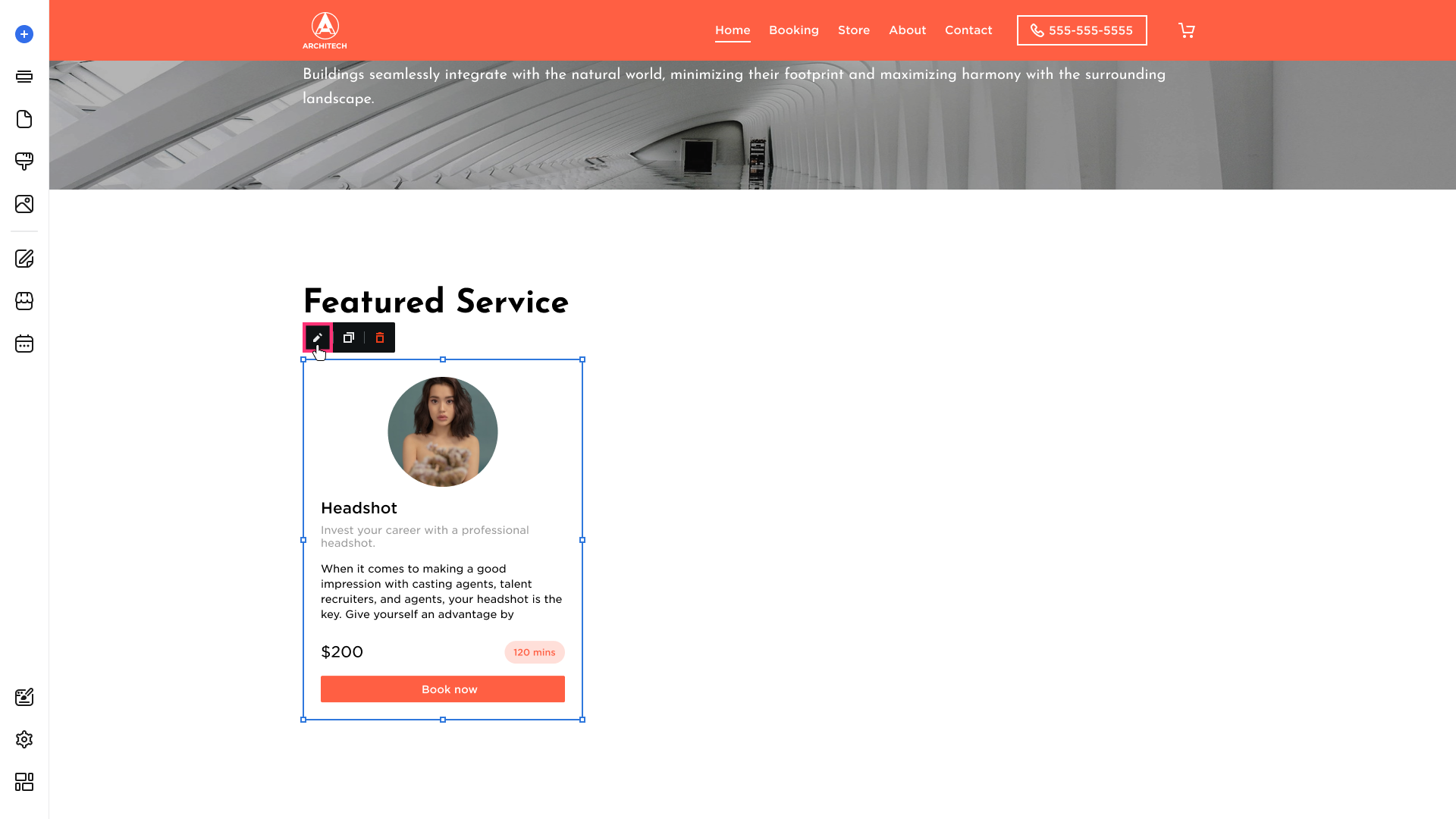 - Click the service element to display the Edit button to be able to modify the product's View and Design: