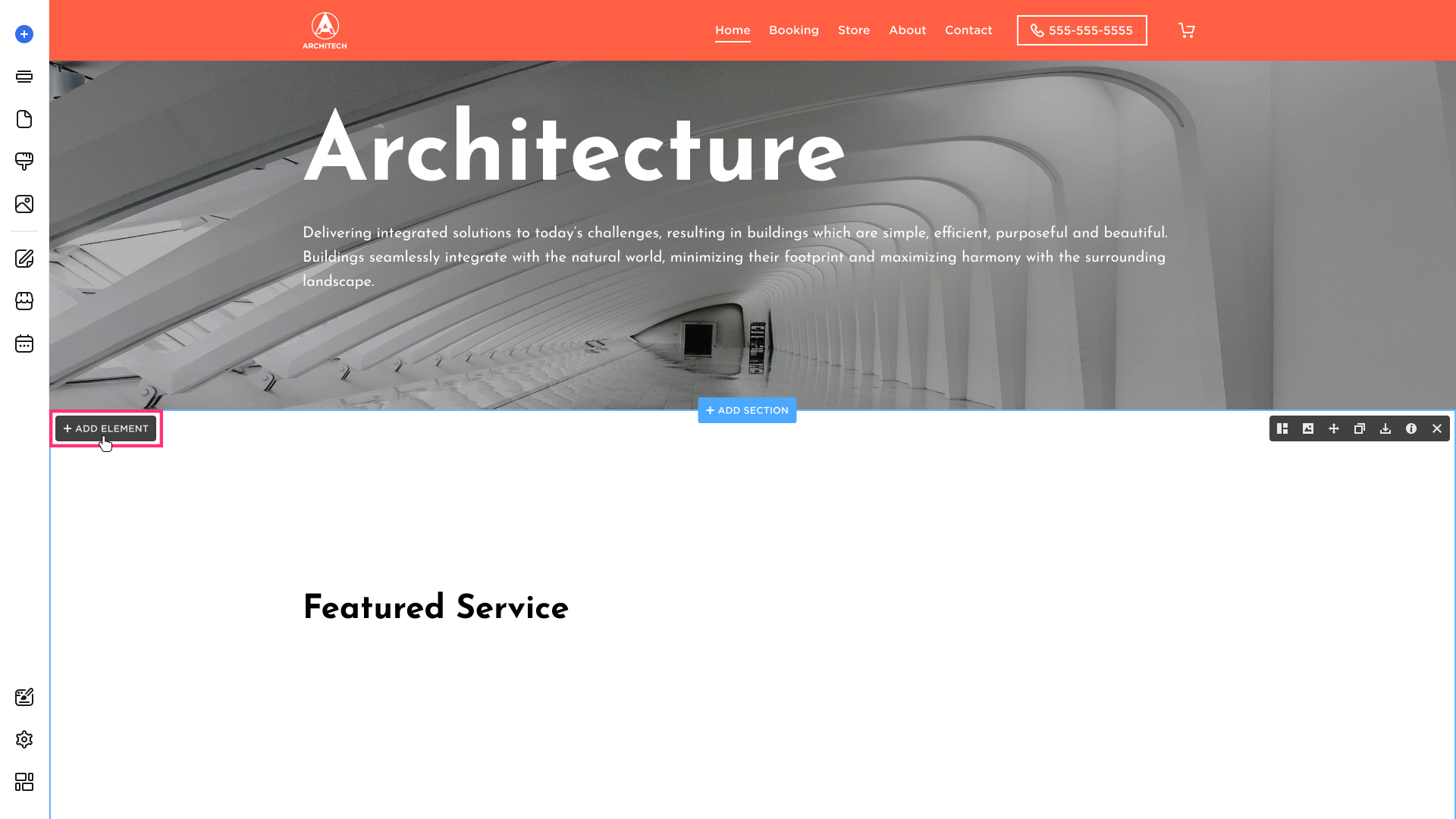 - To delete the service, click on the element and choose the Remove button [Bin] that appears in its toolbar: