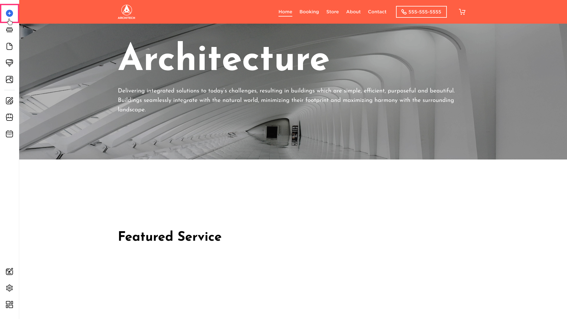 - Hover over the left sidebar of the Site Editor and click Build (+) button: