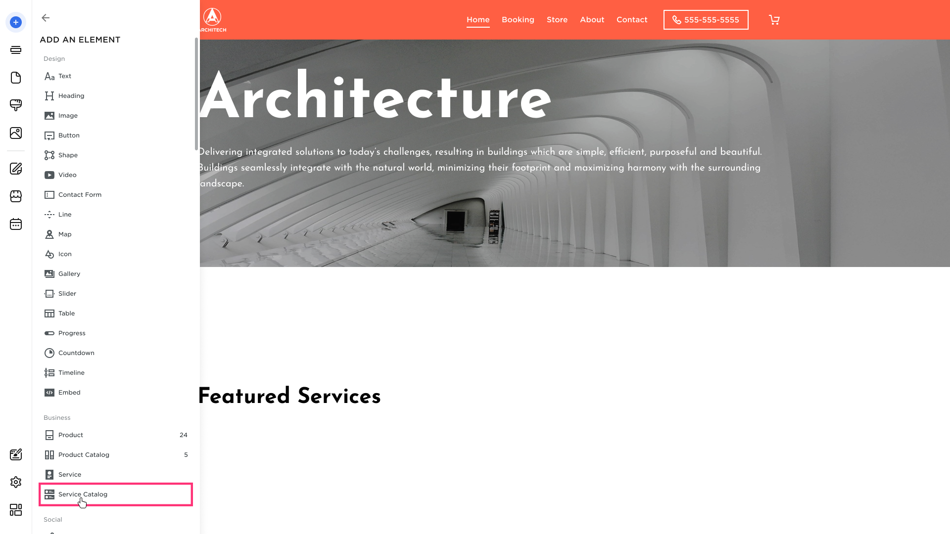 - Click the service element to display the Edit button to be able to modify the product's Layout, View and Design: