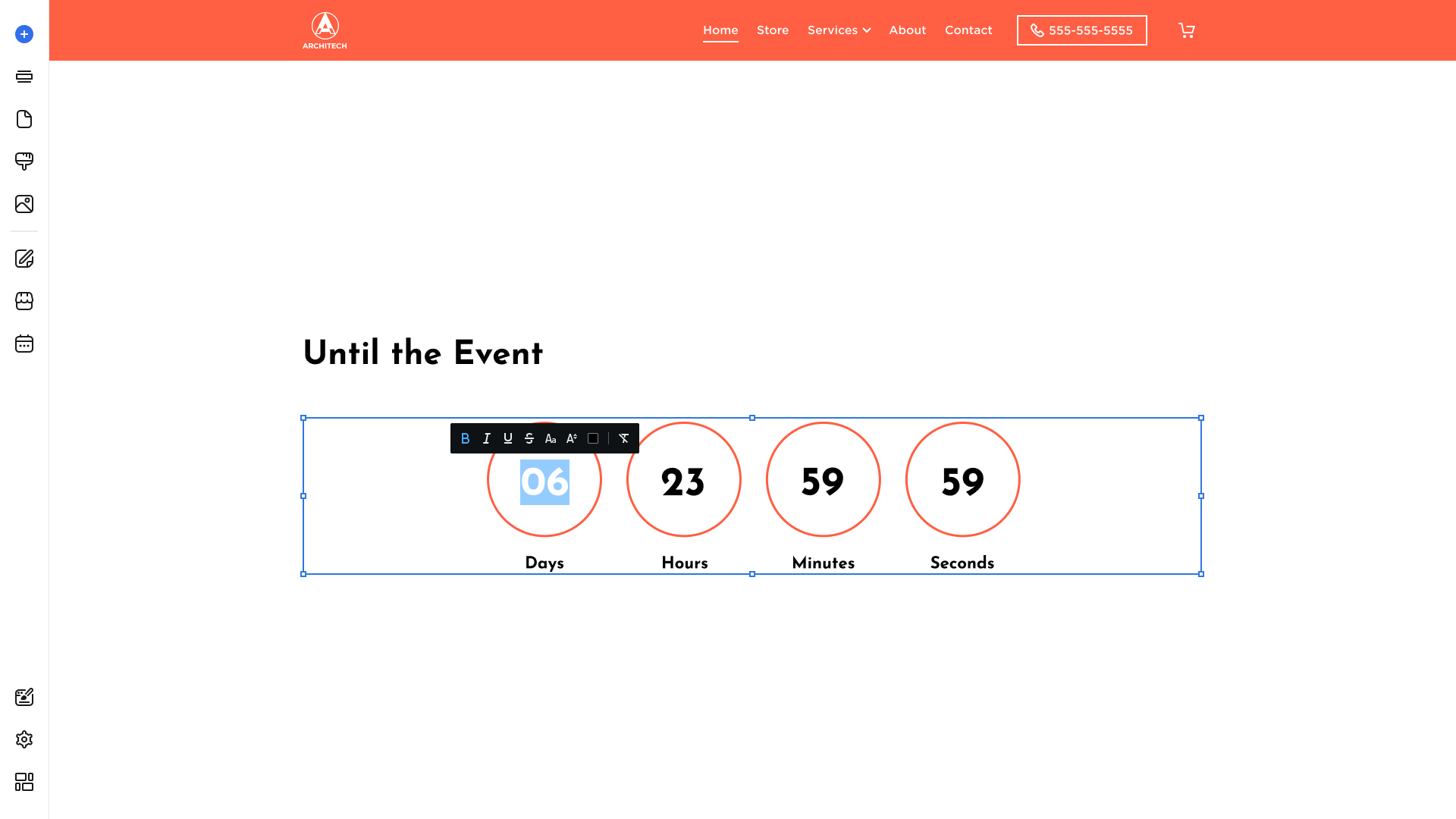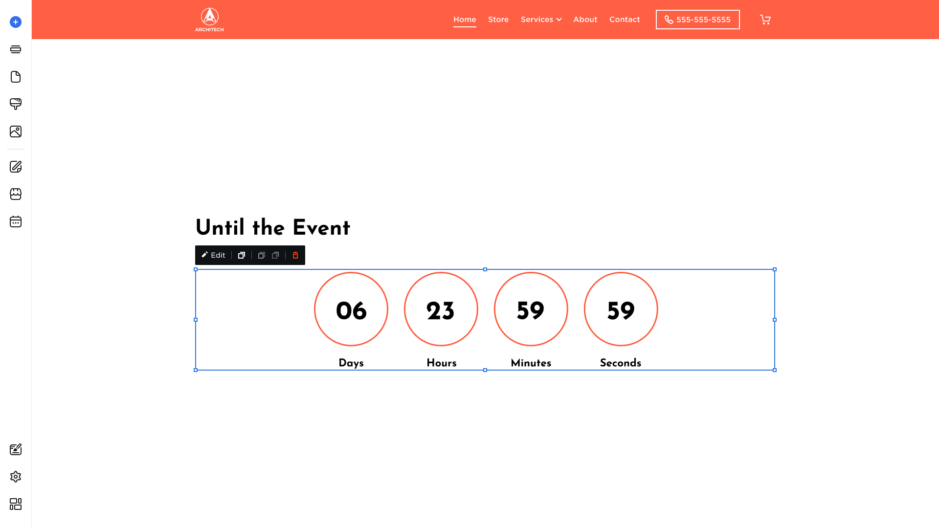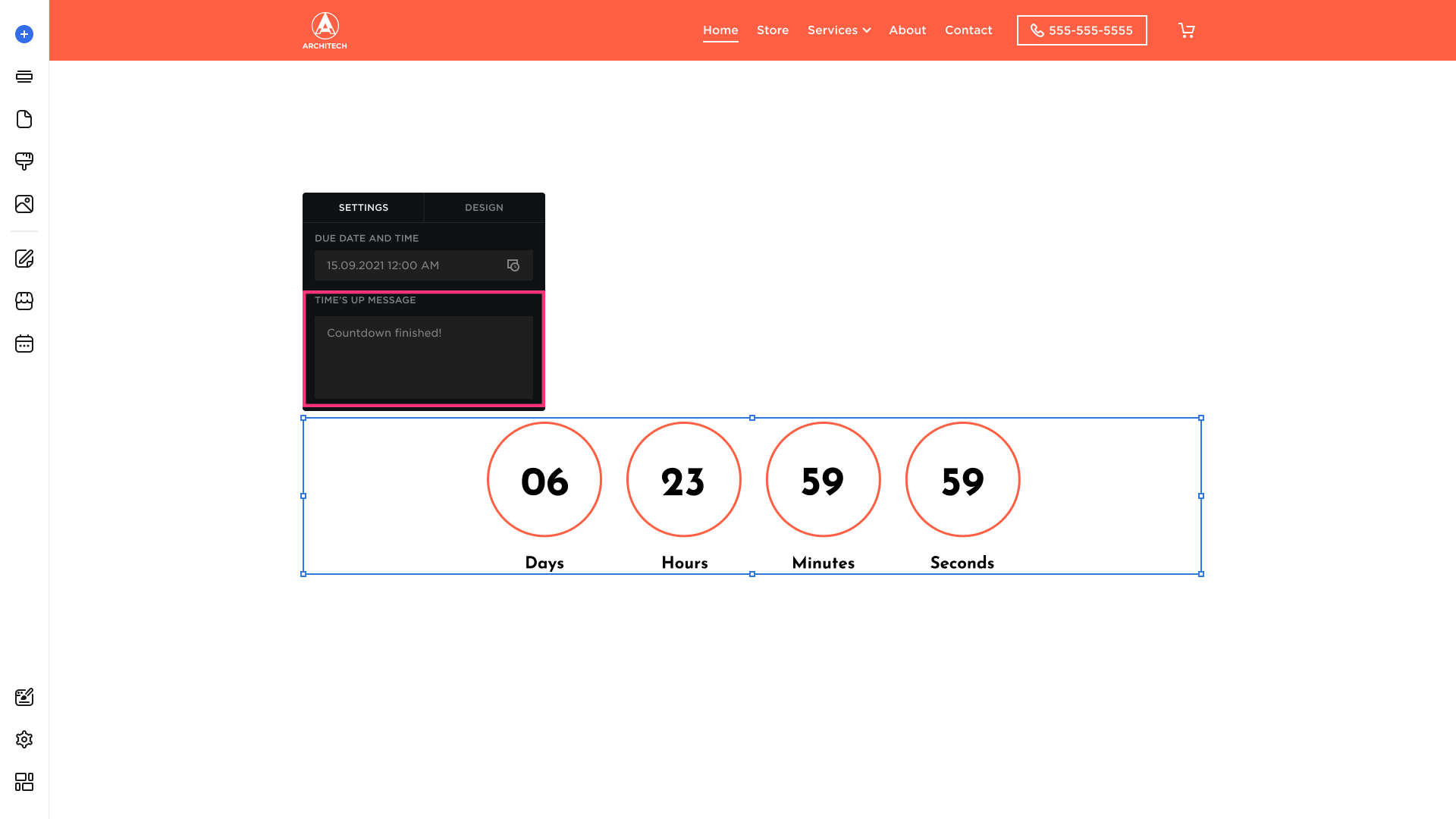 The Countdown can be placed into different page sections. To add a Countdown: