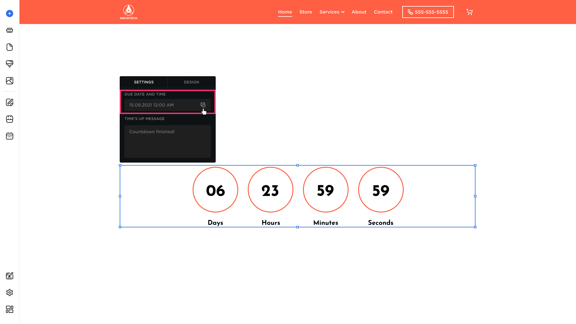 Please Note: The Date choice for the Countdown element is limited to one year from the current date.
