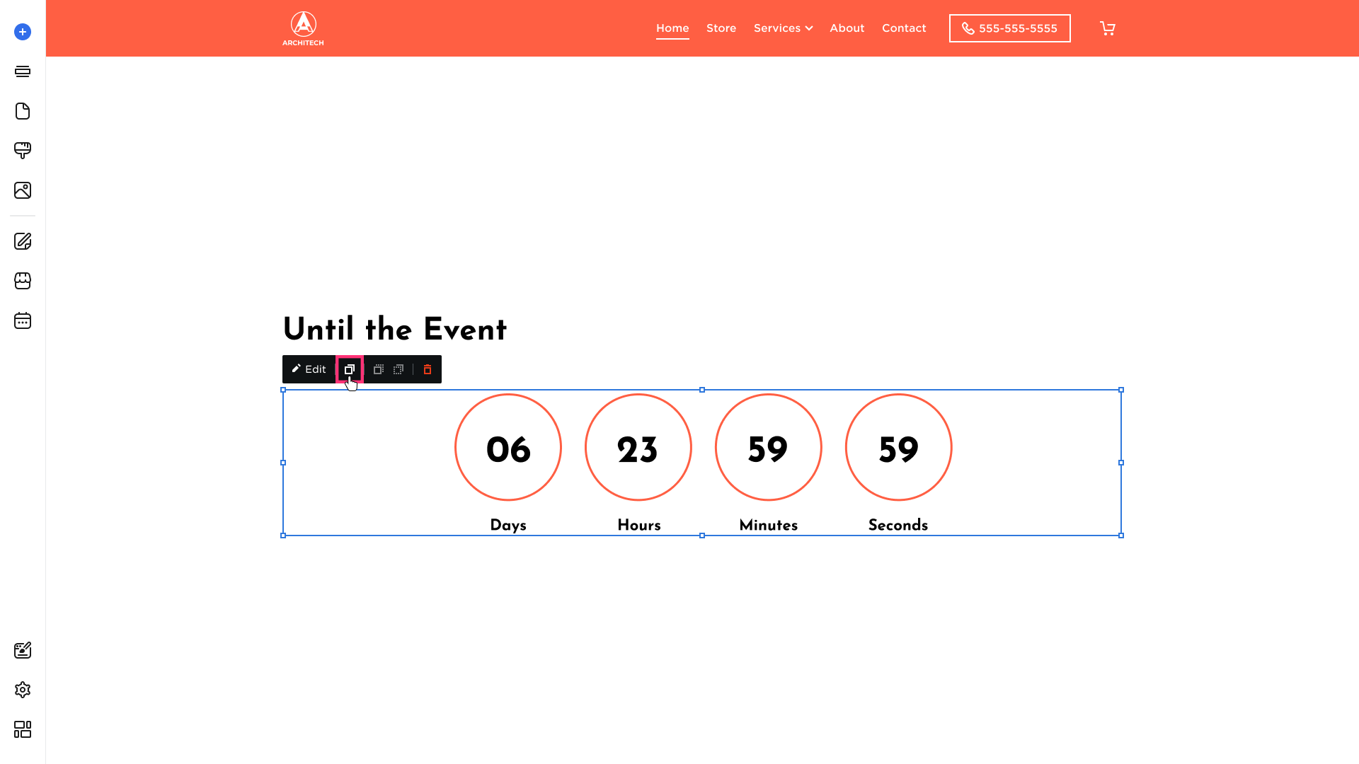 - To duplicate the countdown, click on it and choose the Duplicate button that appears in its toolbar: