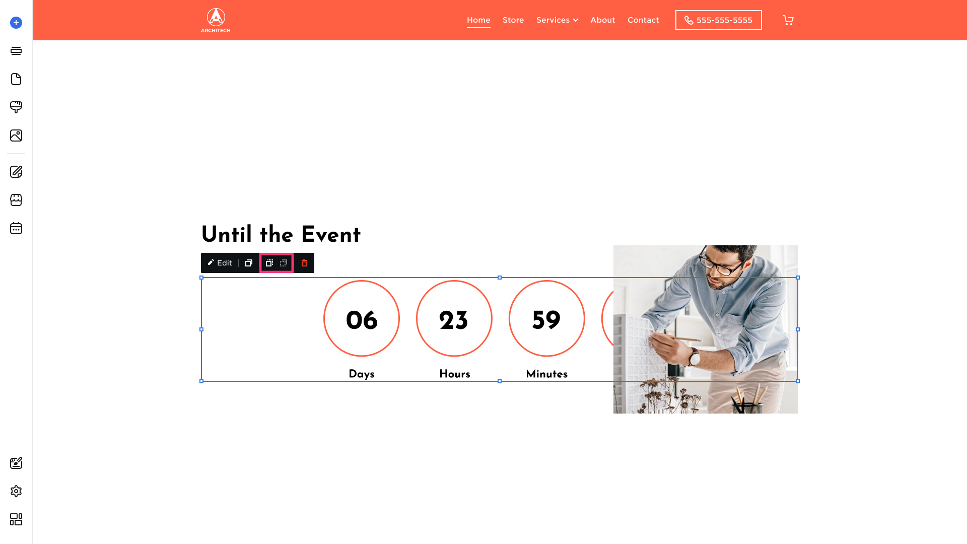 - To delete a countdown, click on it and choose the Remove button [Bin] that appears in its toolbar: