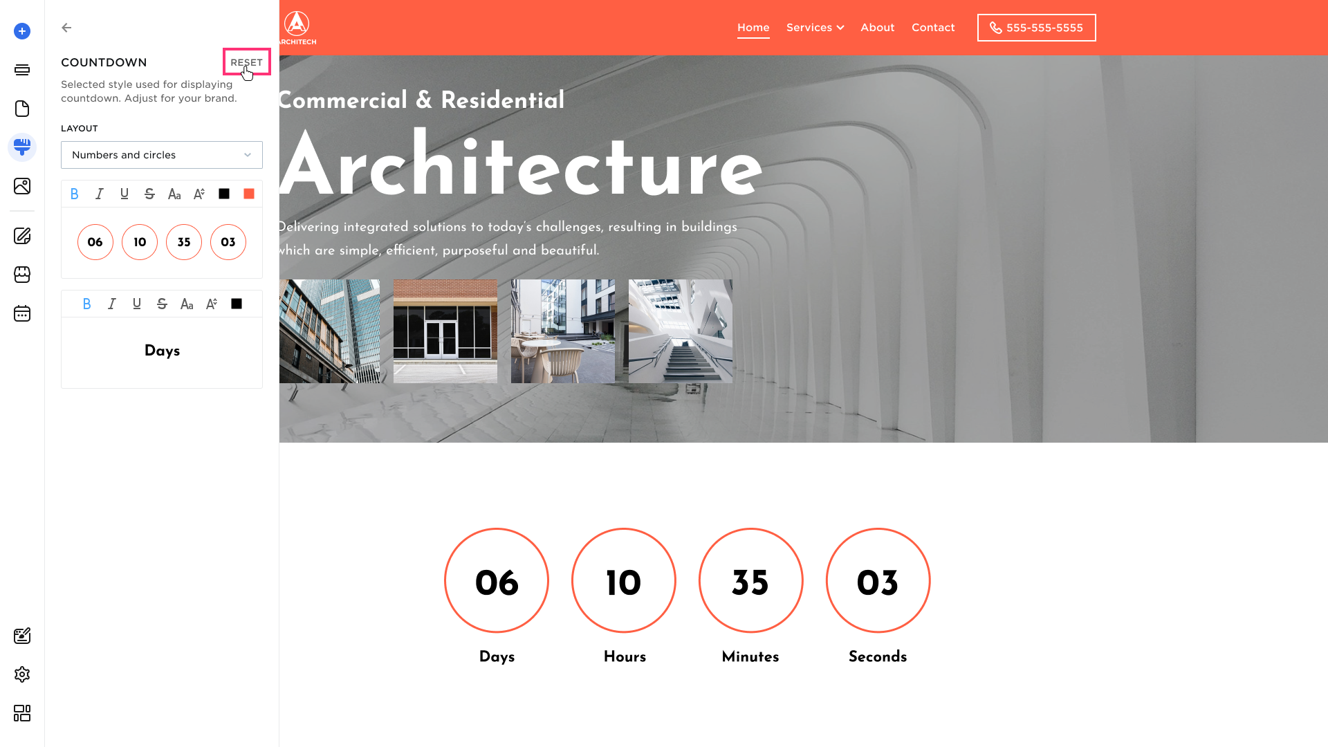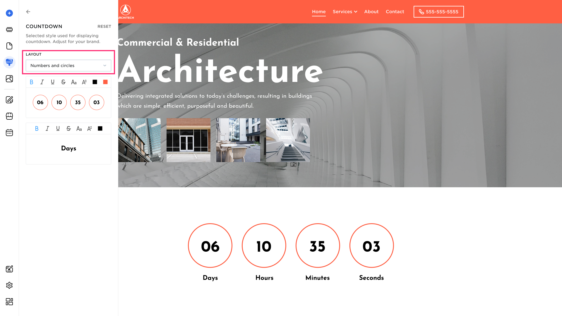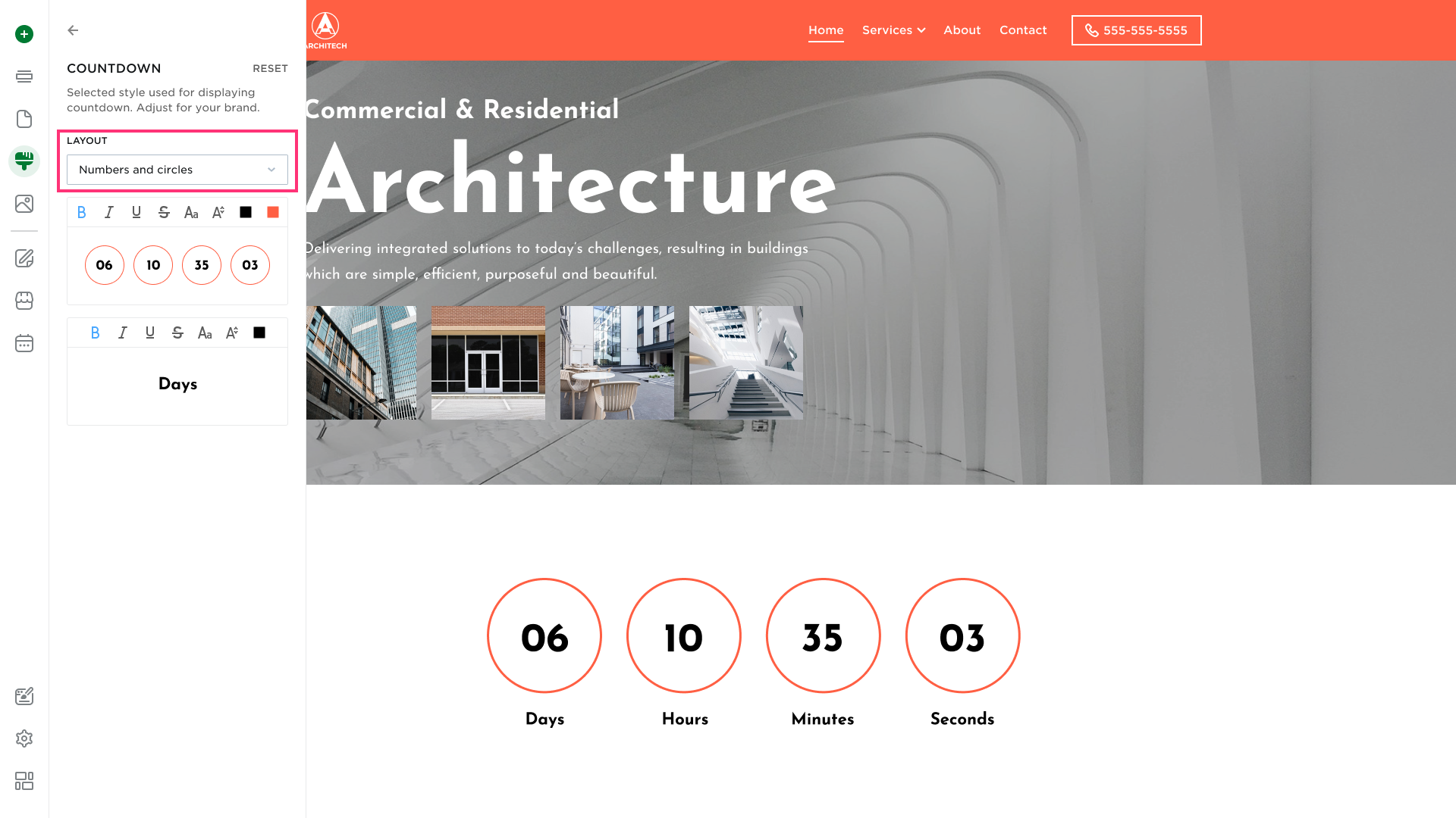 - Layout. You can customize countdown by layout: Numbers and Circles or Numbers Only.