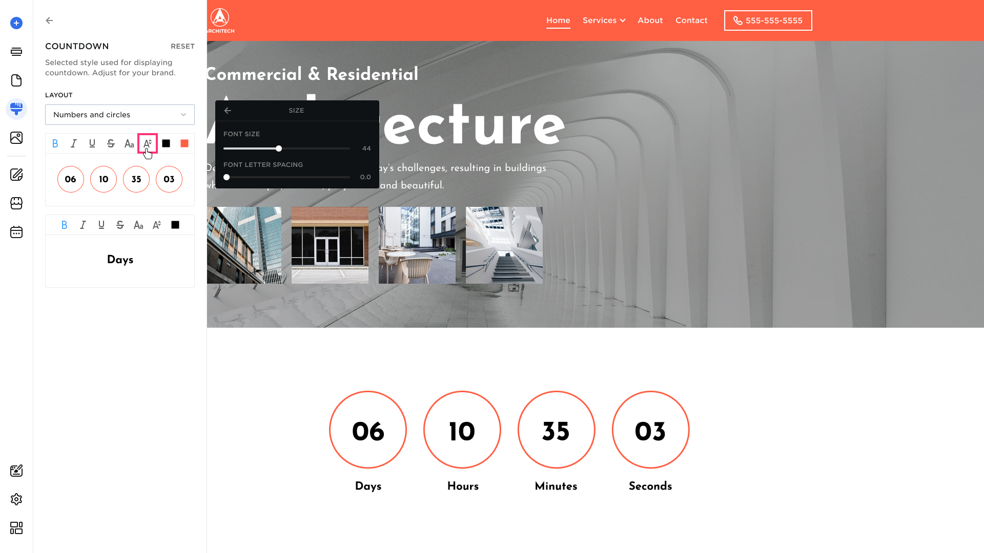 - Font Size and Spacing. Adjust countdown text font size and spacing.
