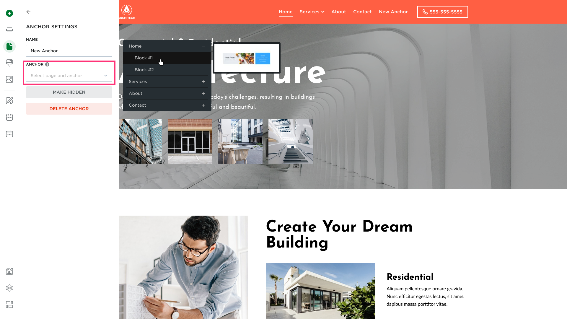 - You can also make it hidden by clicking Make Hidden button. A hidden anchor won't display in the Navigation Menu.
