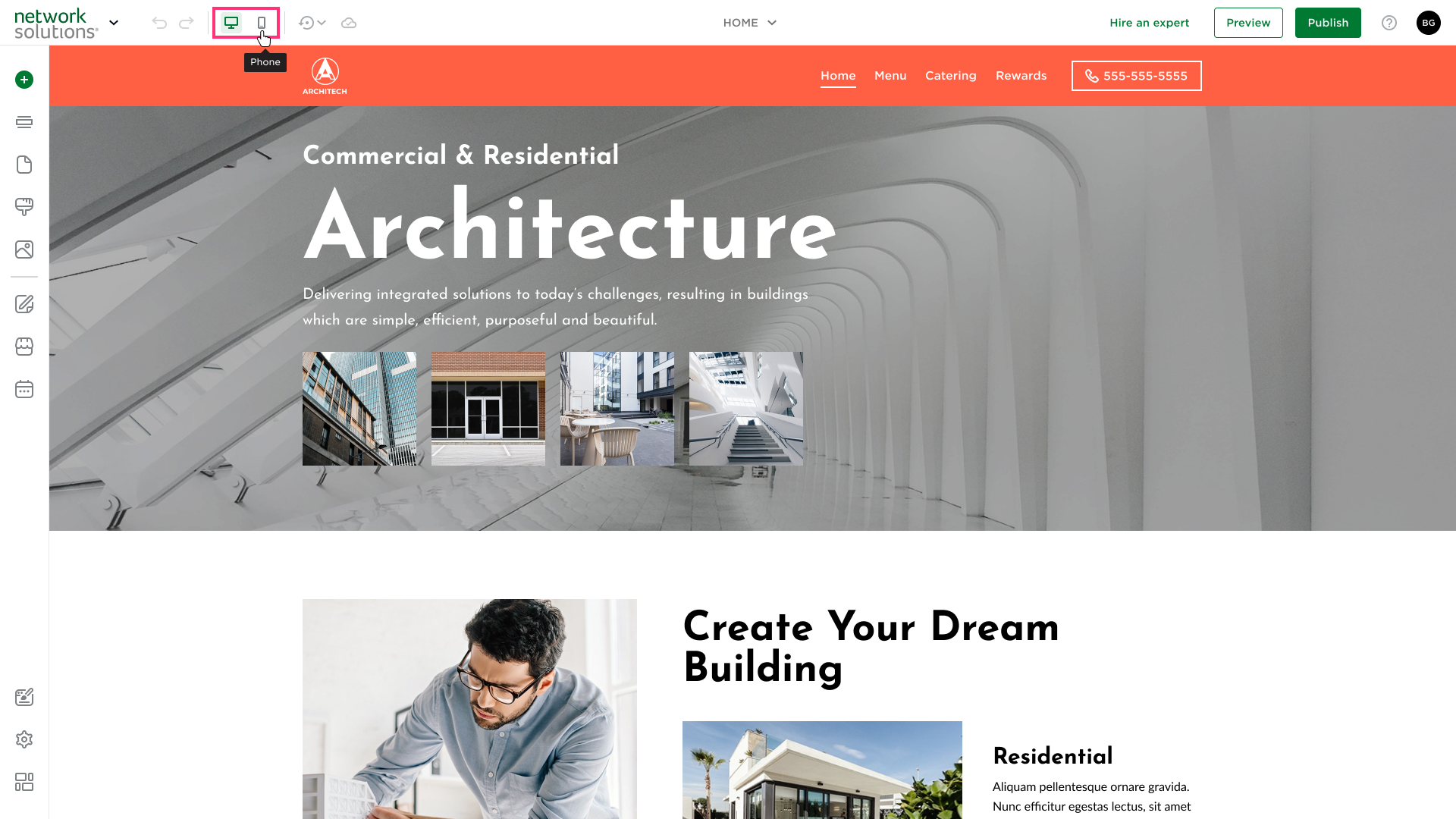 Switch between the Desktop and Phone icons to show the Page Preview:
