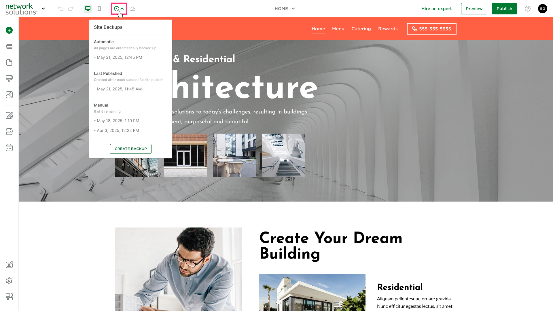 Click the Site Backups icon to see available backups for your project. To learn more, please follow the Site Backups tutorial.