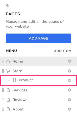 - Find Store in the opened menu, then select Product, and click the Settings icon on the right: