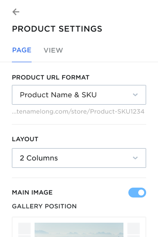 - Manage Product Page Settings on the Page tab: