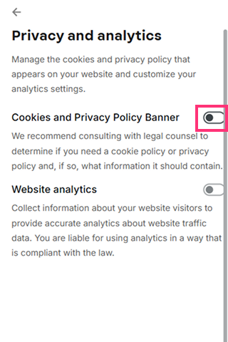 - You can enable the Cookie and Privacy Policy Banner by switching the toggle: