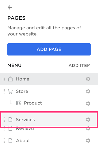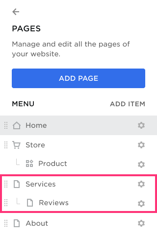 - In the Menu section, hover over the page and drag and drop it into the new position.