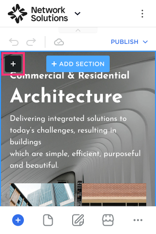 - You can access the library of ready-made elements by clicking the Add Element (+) icon: