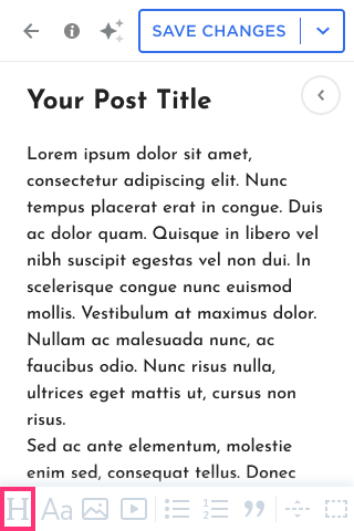 - Click the H button on the toolbar to add a Heading: