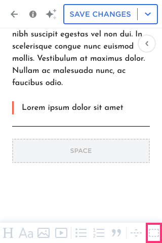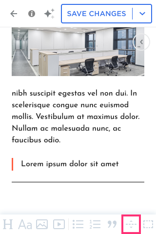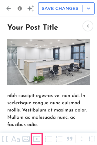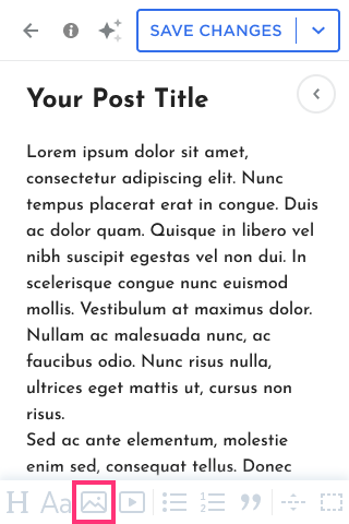 Blog Post Editor Toolbar in Mobile Editor