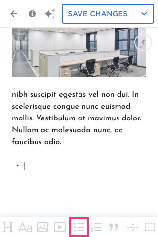 - Add the Unordered List or Ordered List to your text: