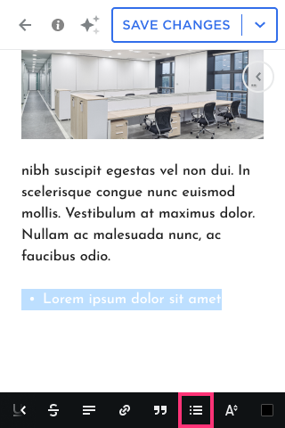 - Modify the List style, bullet color, and offset using the toolbar options: