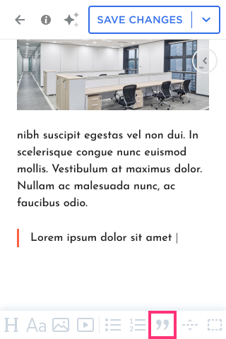 - Add and modify the Blockquote using the toolbar settings: