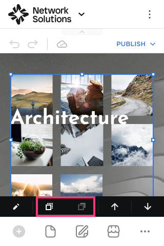 To edit, move, or layer the element, tap on it and switch between the buttons that appears in its toolbar: