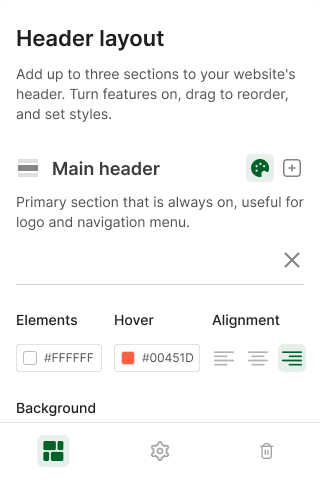 Main Header is a primary section to your website's header, which is pre-populated with elements and can't be empty. Proceed to the Main Header section to modify its content: