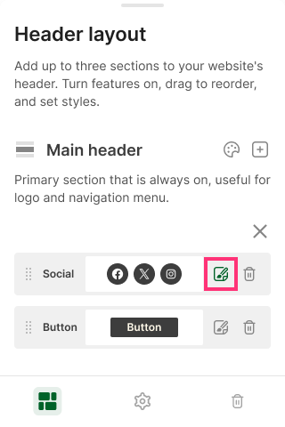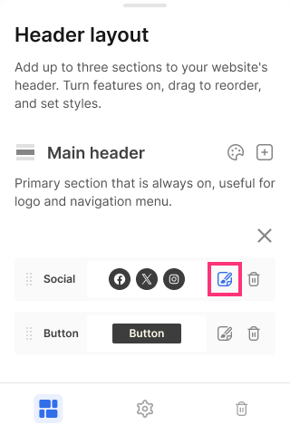 Mobile Editor allows you to customize the Social Buttons in the website Header. Follow the steps below to customize an element: