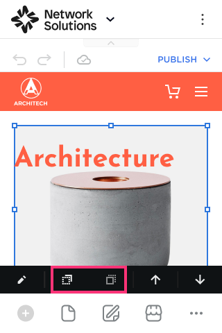 To edit, duplicate, layer or delete the element, tap on it and switch between the buttons that appears in its toolbar: