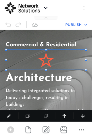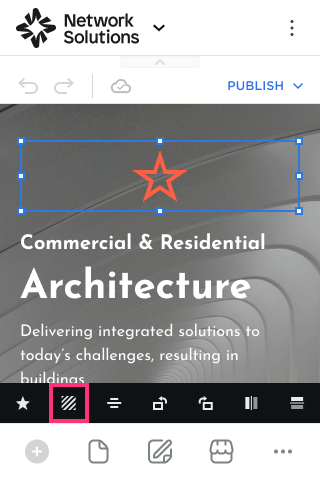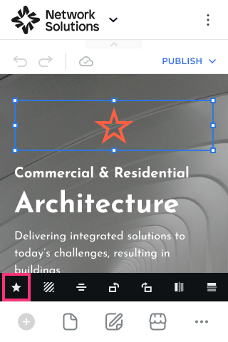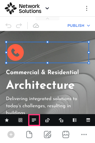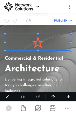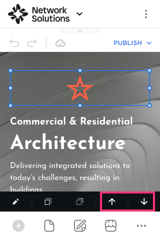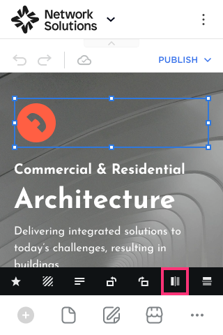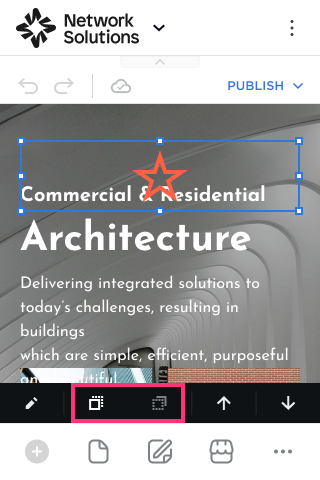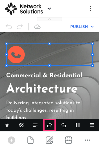 To edit, move, or layer the Icon element, tap on it and switch between the buttons that appears in its toolbar: