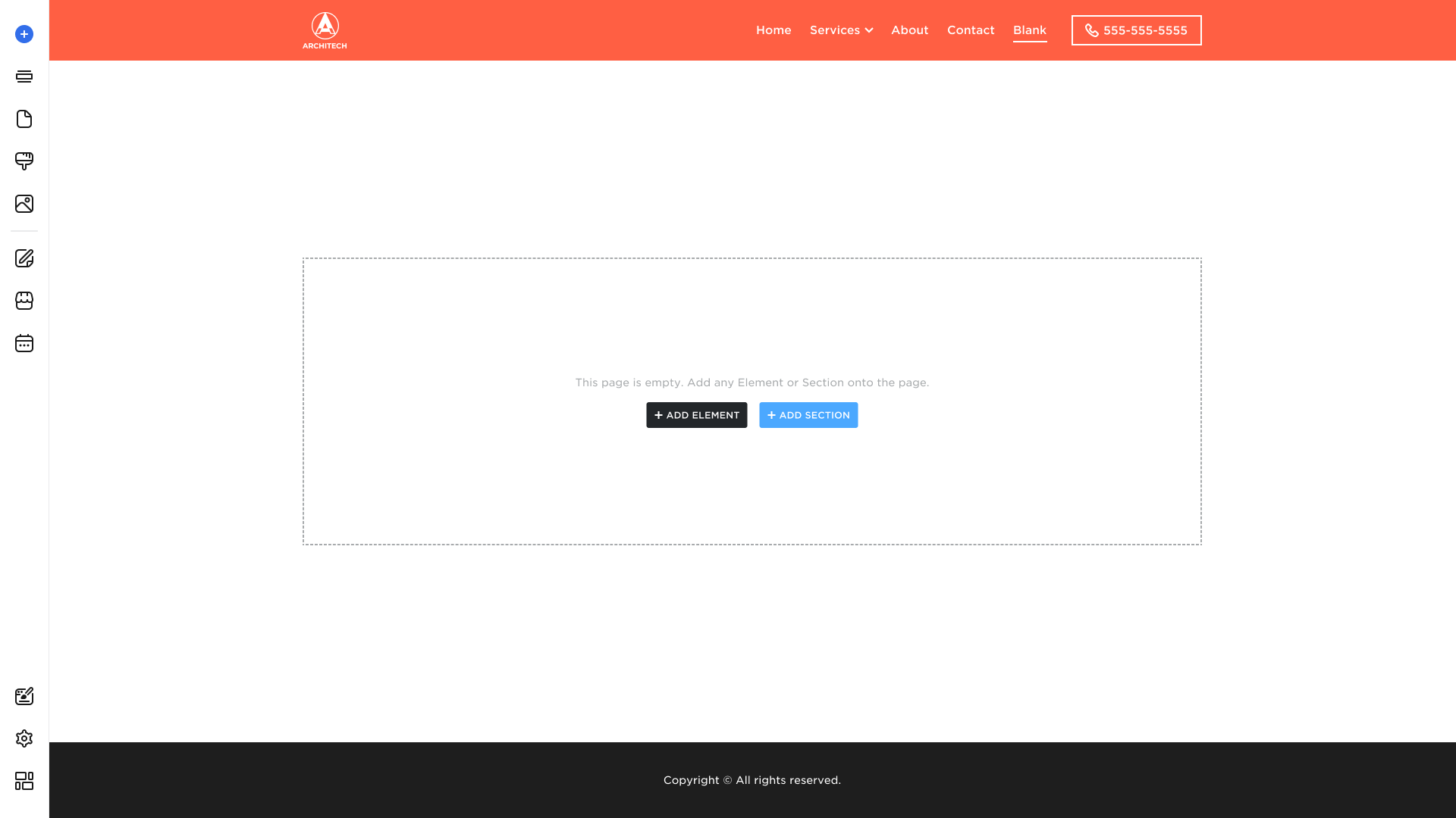 The Blank page is completely customizable. You can add elements and sections to create a unique page tailored to your needs. This is the perfect opportunity to start from scratch and create pages that don't fit a standard category.