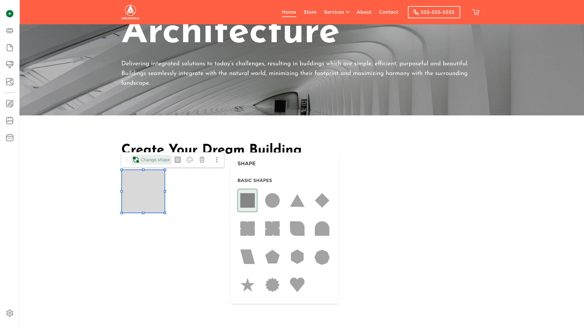 The Shape Element has been added to the Site Editor. Add various shapes to your website, layer, and combine them with other Elements. Adjust the Shape Element’s size, placement, border, color, and other settings to create unique combinations.