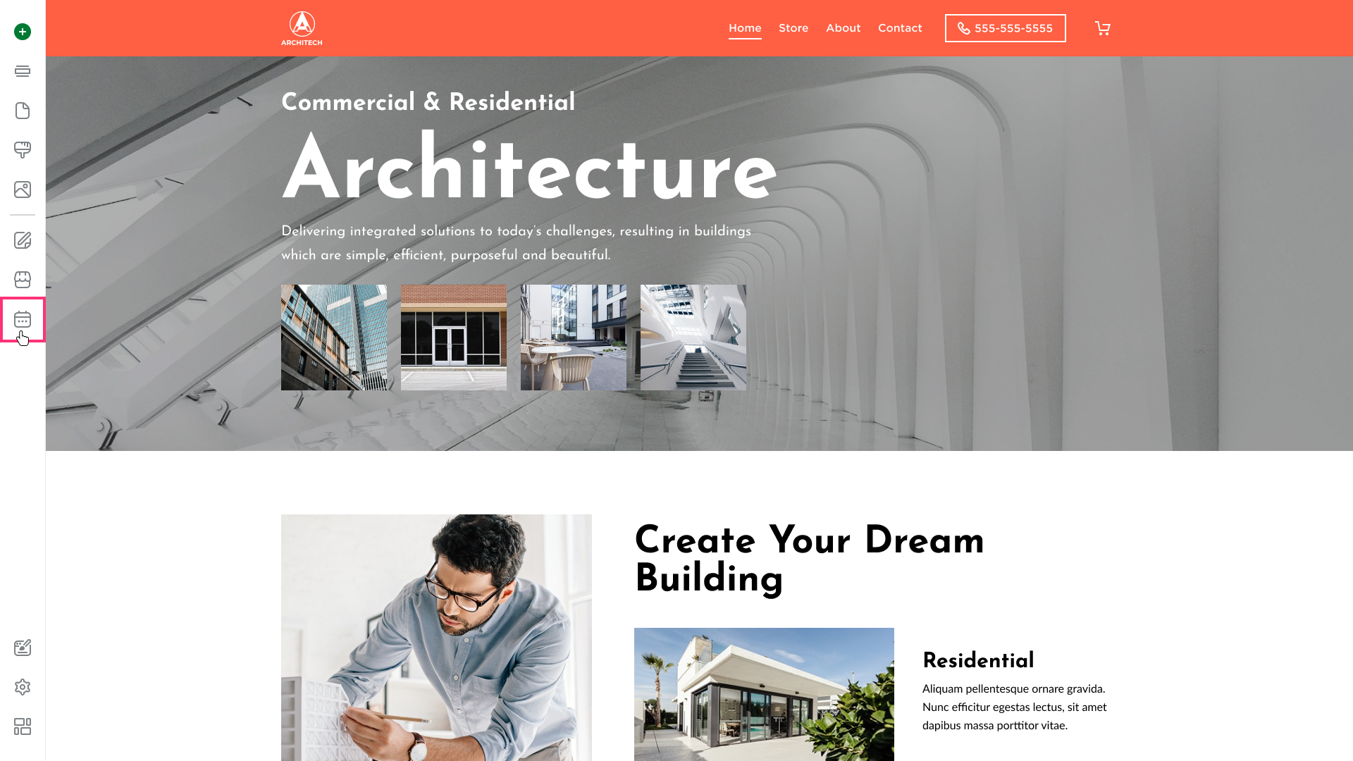 - The Appointments page will be added to your website, and the elements will be available in the Website Builder. The Appointments icon will be added to the sidebar.