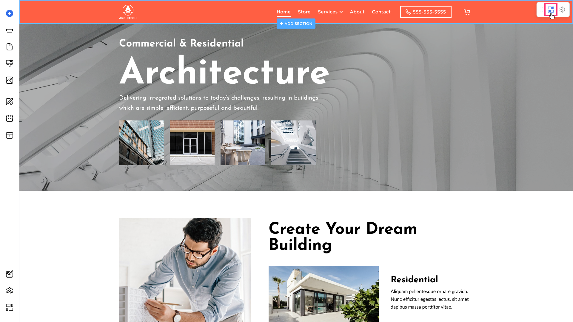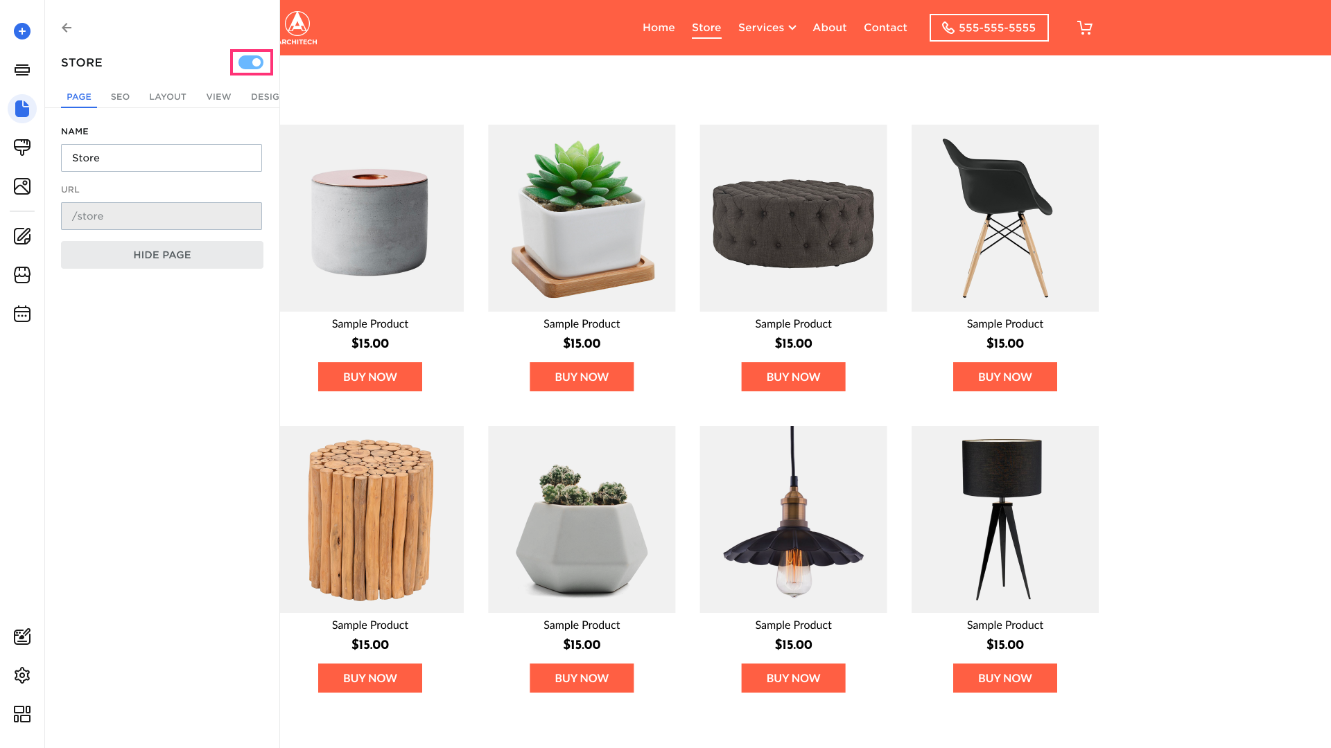 Inside the Store section in the Site Editor you will be able to access your Store functionality. You will see the Store navigation immediately without the need to exit the Website Builder.