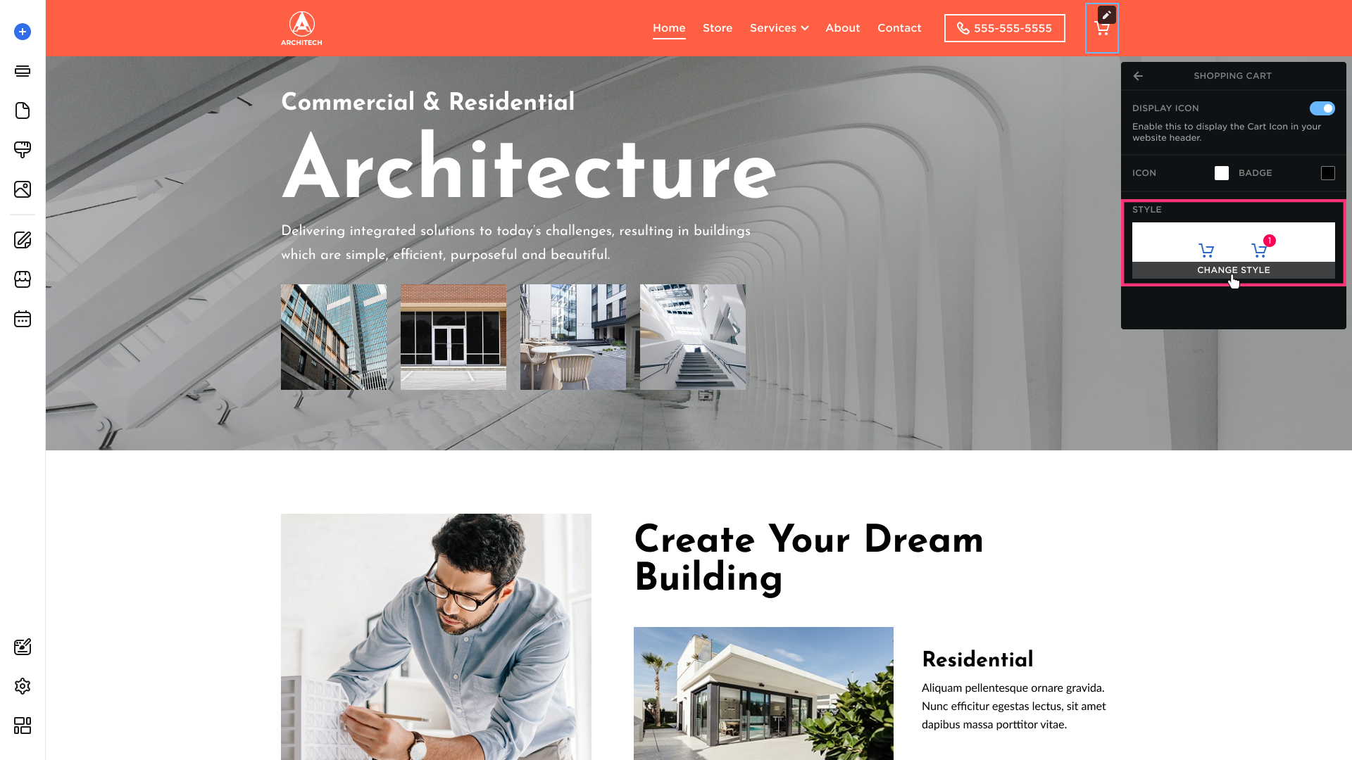 - Select the Shopping Cart style from the list after clicking Change Style: