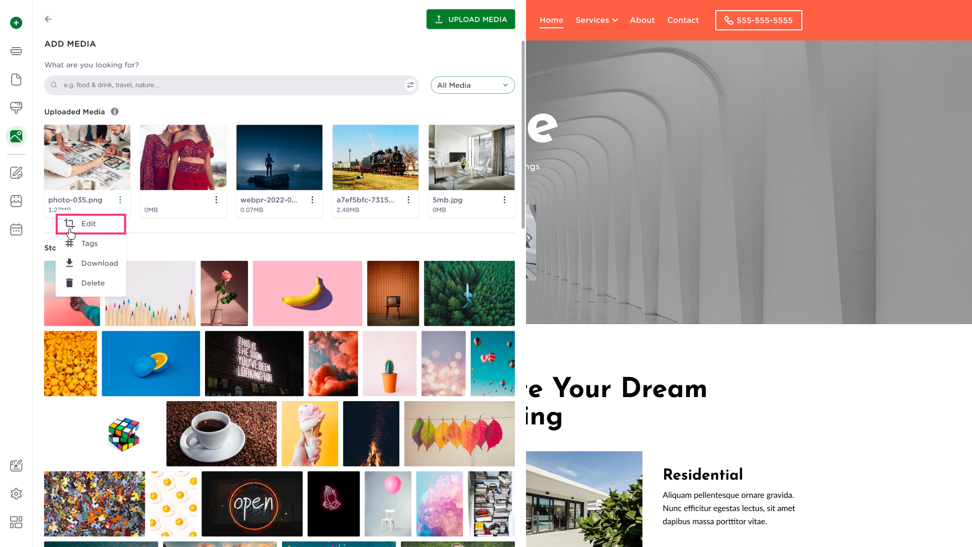 - Within the Image Library tab, hover over the Photo, click the vertical ellipsis ( ⋮ ) and select Edit: